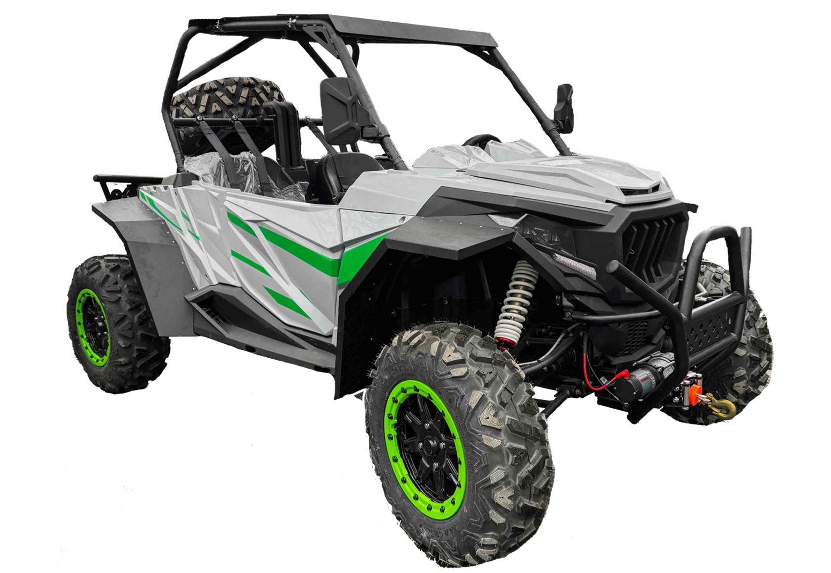 Готовы к комфортному преодолению бездорожья?Наш двухместный багги — идеальный выбор для охоты, рыбалки, экспедиций и экстремальных поездок. Оснащенный мощным одноцилиндровым двигателем (500 см³, 37.5 л.с.) с жидкостным охлаждением, он уверенно преодолевает грязь, песок и снег, работая на доступном бензине АИ-92.Высокая проходимость благодаря:– Вариаторной трансмиссии с переключением между 2WD и 4WD.– Переднему дифференциалу для улучшенного сцепления.– Независимой подвеске с двойными А-образными рычагами (ход 110 мм спереди / 95 мм сзади) для плавности хода.– Опциональным азотным амортизаторам для повышенной выносливости.Надежность на любом покрытии:– 26-дюймовые шины (26x8 R14) с легкосплавными дисками.– Гидравлические тормоза для уверенного торможения.– Клиренс 29 см для преодоления препятствий.– Электрическая лебедка (1600 кг) на сложных участках.Комфорт и контроль:– Электроусилитель руля (EPS) для легкого управления.– Светодиодная оптика (фары, поворотники, ДХО) — отличная видимость днем и ночью.– Удобная приборная панель с тахометром, датчиками топлива и температуры, индикаторами передачи и привода.– 12V-розетка для подключения устройств.Практичность:– Грузоподъемность 300 кг (багажник 820×390 мм).– Компактные размеры (2850×1525×1675 мм) и сухой вес 540 кг — маневренность и экономичность.– Топливный бак 22 л — запас хода для дальних маршрутов.Дополнительные опции:– Сабвуфер для мощного звука.– Азотные амортизаторы для повышенной устойчивости.– Гарантия: 1 год или 5000 км.Это не просто багги, а надежный внедорожный инструмент для тех, кто ценит мощность, проходимость и свободу!Технические характеристики и комплектация товара могут быть изменены производителем без уведомления.Вес: 540 кгДxШxВ: 2850x1525x1675 мм