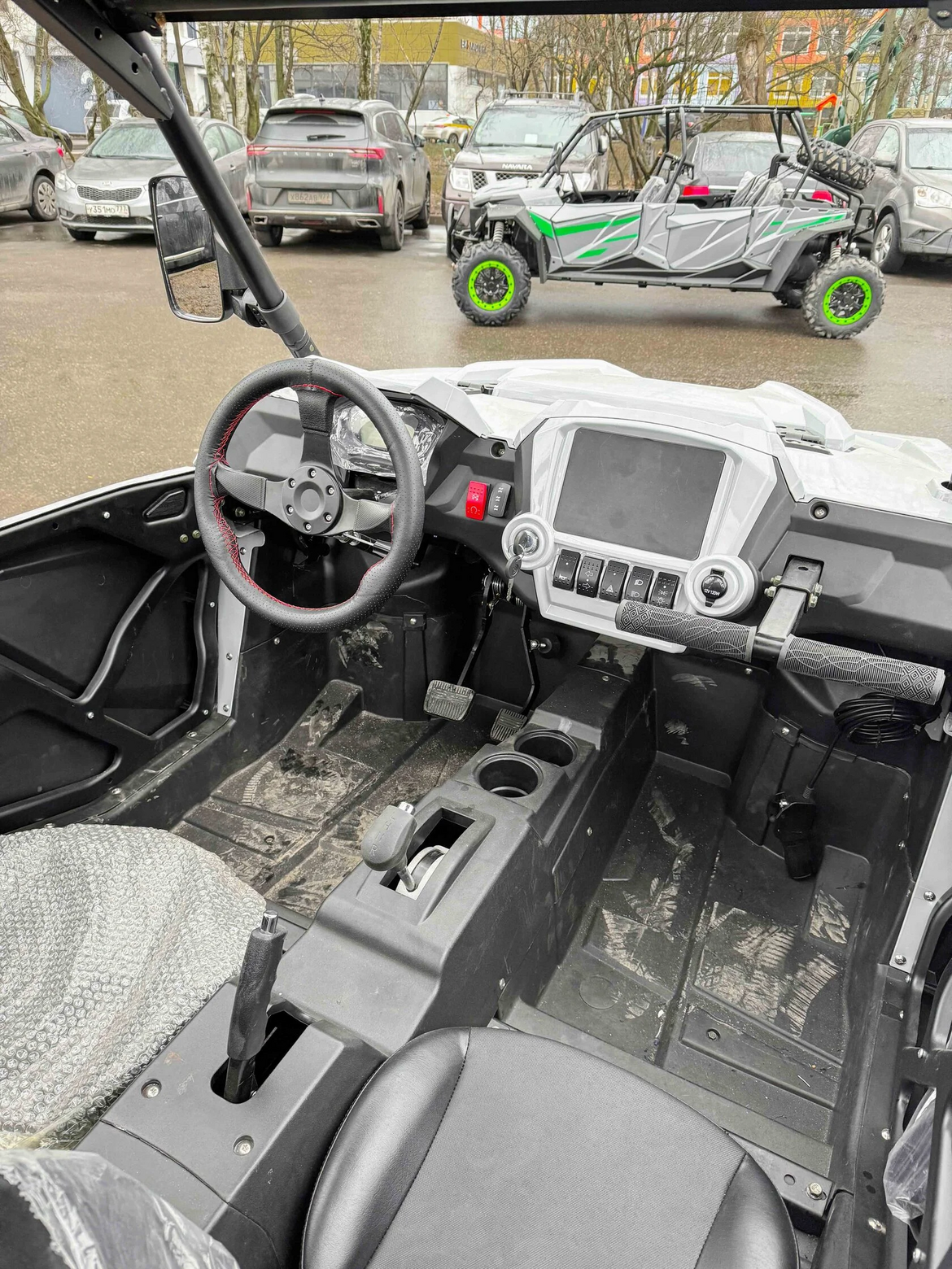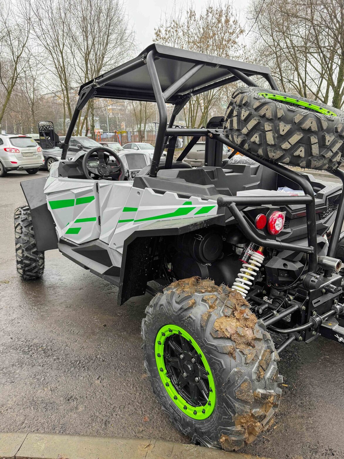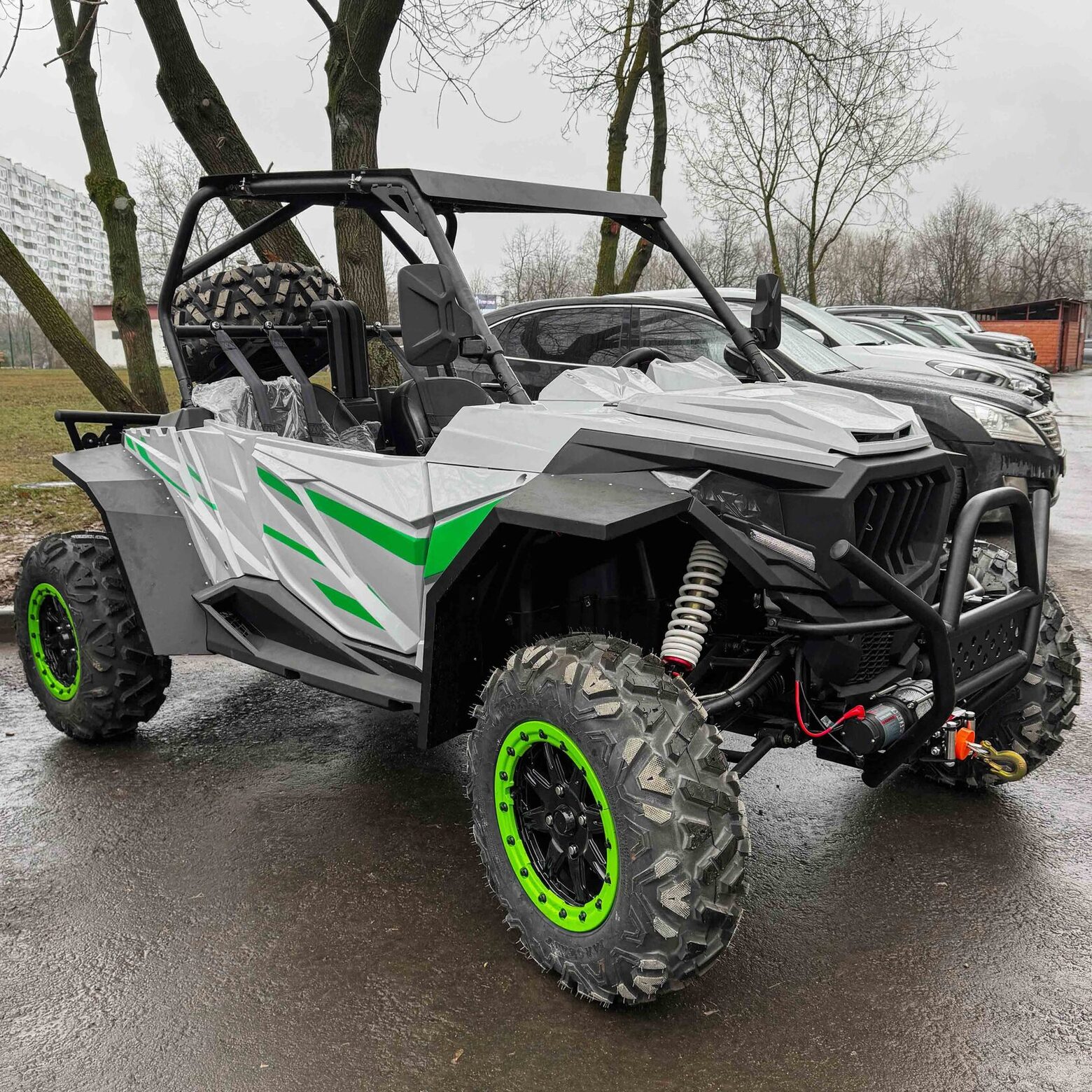 Двухместный баггиГотовы покорять бездорожье с комфортом? Наш двухместный багги – это идеальный спутник для охоты, рыбалки, экспедиций и экстремальных приключений. С мощным V-образным двигателем (799 см³, 59 л.с.) и жидкостным охлаждением он легко справляется с грязью, песком и снегом, работая на доступном АИ-92.Превосходная проходимость обеспечивается вариаторной трансмиссией с возможностью переключения между 2WD и 4WD, а также передним дифференциалом для лучшего сцепления. Независимая подвеска с двойными А-образными рычагами и ходом 110 мм (спереди) / 95 мм (сзади) гарантирует плавность хода даже на сложном рельефе. Опционально доступны азотные амортизаторы для еще большей выносливости.26-дюймовые шины (26x8 R14) с легкосплавными дисками и гидравлическими тормозами обеспечивают уверенное движение и мгновенную остановку. Клиренс 29 см позволяет преодолевать серьезные препятствия, а электрическая лебедка на 1600 кг выручит в самых сложных ситуациях.Комфорт и управляемость:Электроусилитель руля (EPS) – легкое и точное управление.Светодиодная оптика (фары, поворотники, ДХО) – отличная видимость в любое время суток.Удобная приборная панель с тахометром, датчиками топлива и температуры, индикаторами передачи и привода.12V-розетка для подключения гаджетов и аксессуаров.Практичность:Грузоподъемность 100 кг (багажник 820×390 мм) – достаточно места для снаряжения.Компактные габариты (3000×1645×1675 мм) и сухой вес 560 кг – маневренность и экономичность.Топливный бак 22 л – запас хода для длительных маршрутов.Дополнительные опции:Сабвуфер – для любителей мощного звука в пути.Азотные амортизаторы – повышенная устойчивость к нагрузкам.