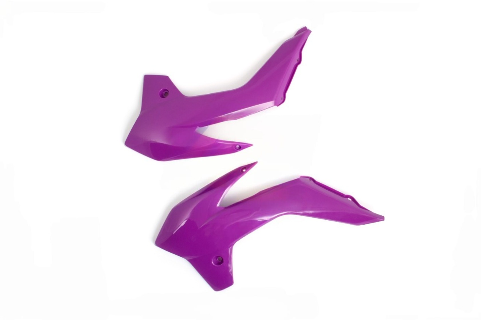 Пара фиолетовых передних обтекателей для мотоциклов KTM SX85 2013-2016 года, а также для аналогичных китайских моделей на раме K5 (таких как Kayo K1, BRZ X5 и др). Изготовлены из высококачественного ударопрочного пластика под тип KTM SX85. Полный аналог оригинальной детали KTM с артикулом 4710805400004. Обеспечивают отличную защиту и стильный внешний вид, легко устанавливаются на штатные крепления без доработок.