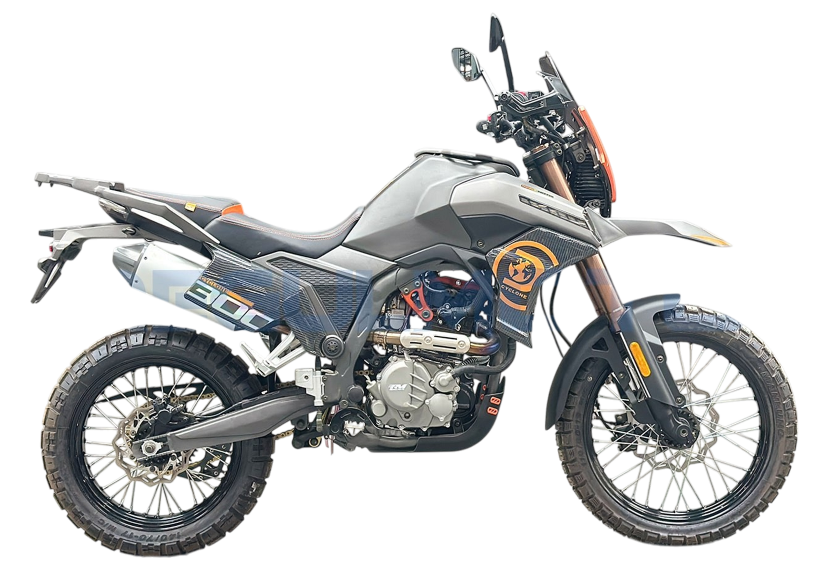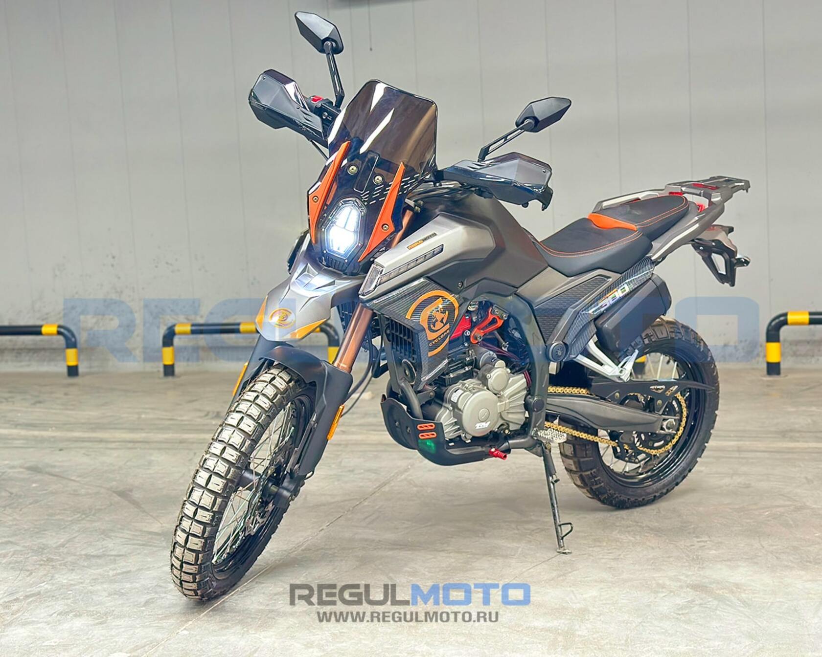 НОВИНКА! Regulmoto Cyclone NB300 2025 — Уникальная платформа!Спешим представить новинку 2025 года — мотоцикл Regulmoto Cyclone NB300!Это не просто обновление, а совершенно новая модель с революционными решениями и агрессивным дизайном, созданная для лидерства в своем классе.КЛЮЧЕВЫЕ ОСОБЕННОСТИ CYCLONE NB300:– ЭКСКЛЮЗИВ: Поворотная фара!Свет всегда точно освещает траекторию поворота – уникальная технология для этого сегмента!– Максимальная стабильность: Рекордная колесная база 1450 мм для уверенного поведения на любом покрытии.– Комфорт для всех: Высота по седлу 870 мм – оптимально для большинства райдеров.– Дальнобойность: Объемный бензобак 17 литров – реже остановки, больше свободы.– Сердце чемпиона: Двигатель NB300 с 6-ступенчатой КПП.– Заряд мощности: Карбюратор Nibbi Racing PWK 34 – отзывчивость и динамика.– Проходимость + контроль: Перевернутые передние амортизаторы 41 мм + шины двойного назначения:Перед: 110/80-19Зад: 140/70-17– Современный облик: Полностью светодиодная оптика (фары, стопы, поворотники).