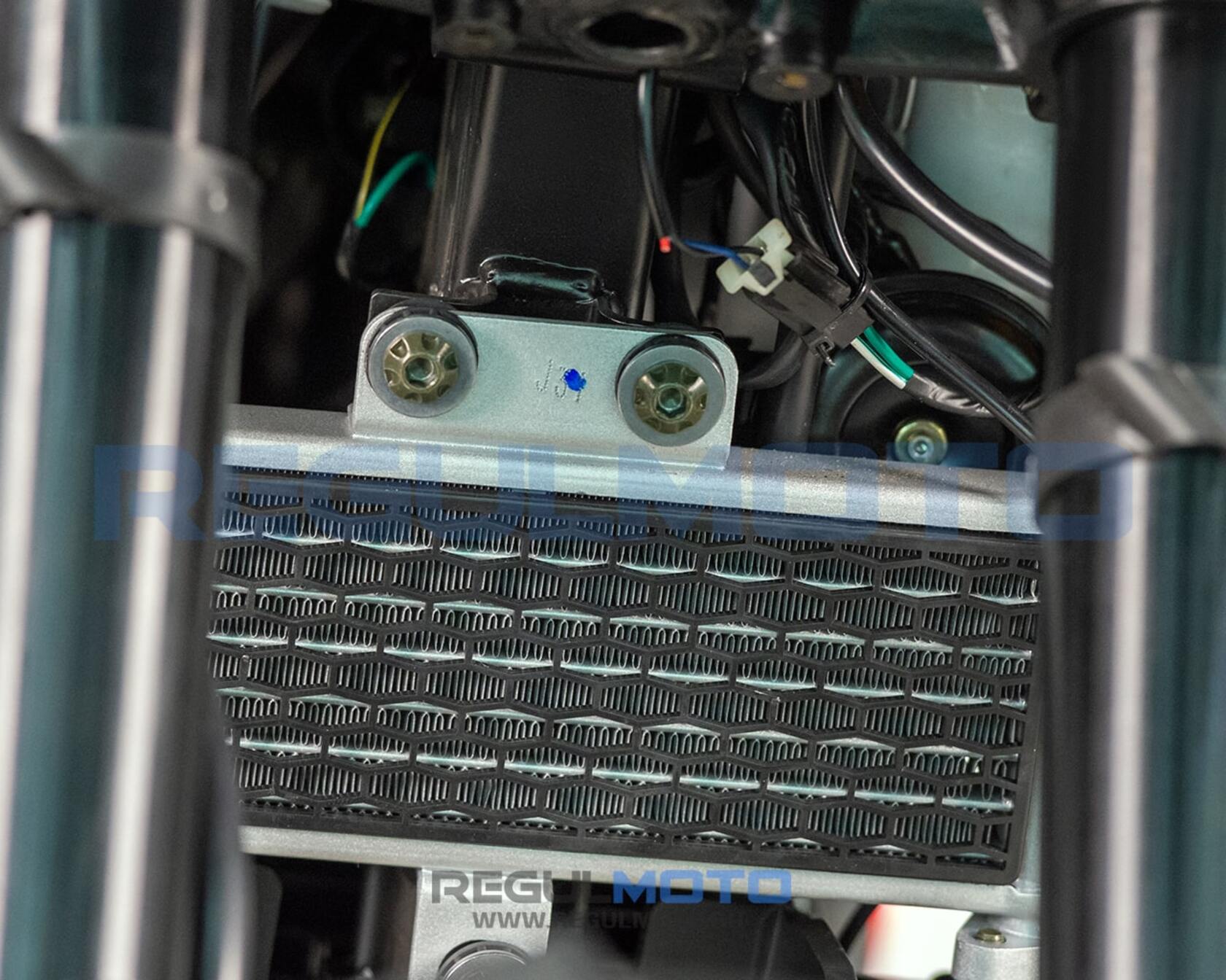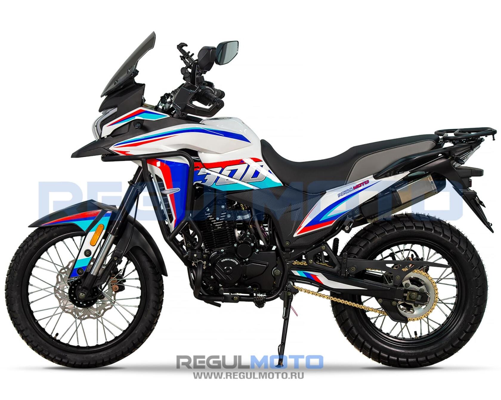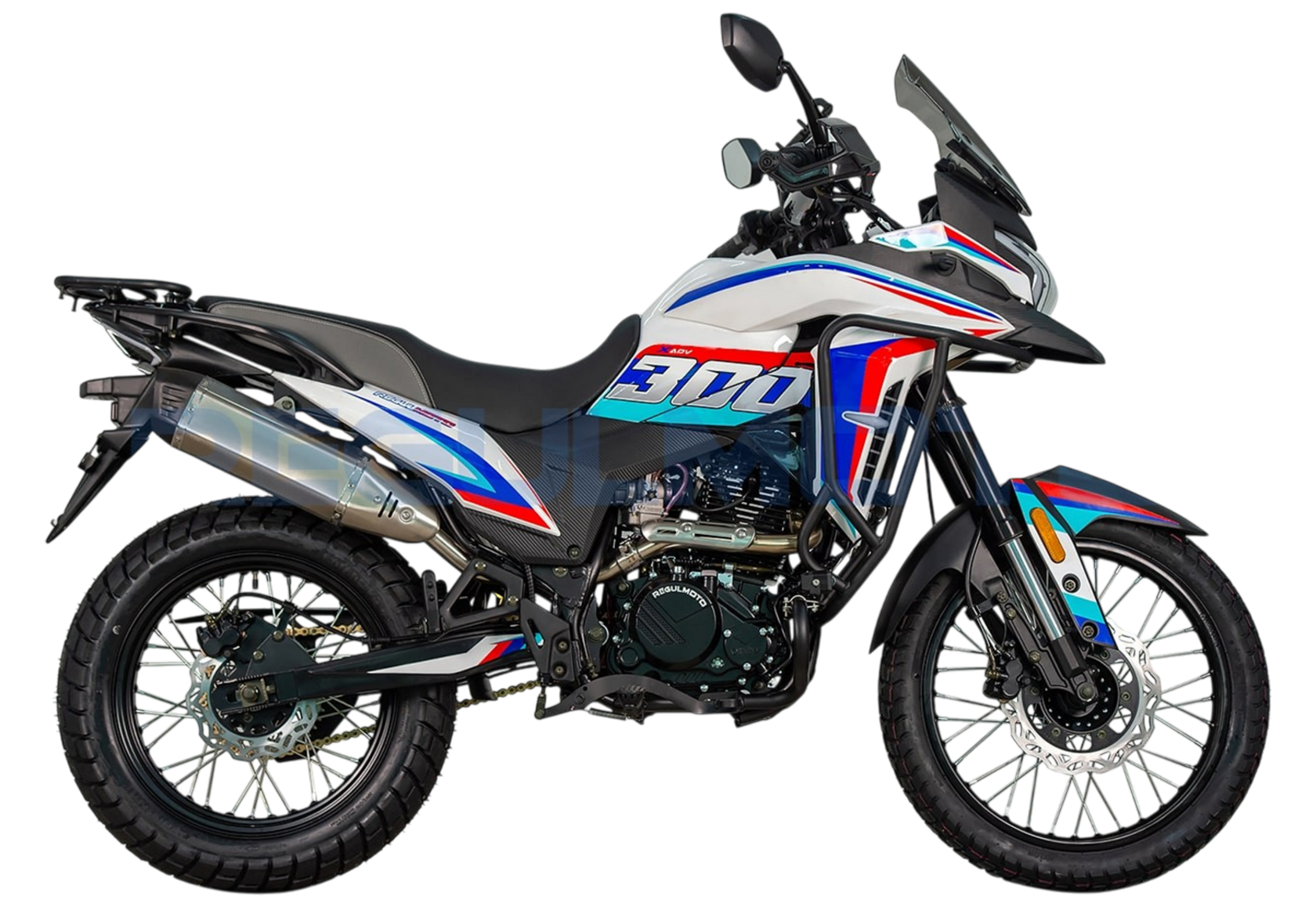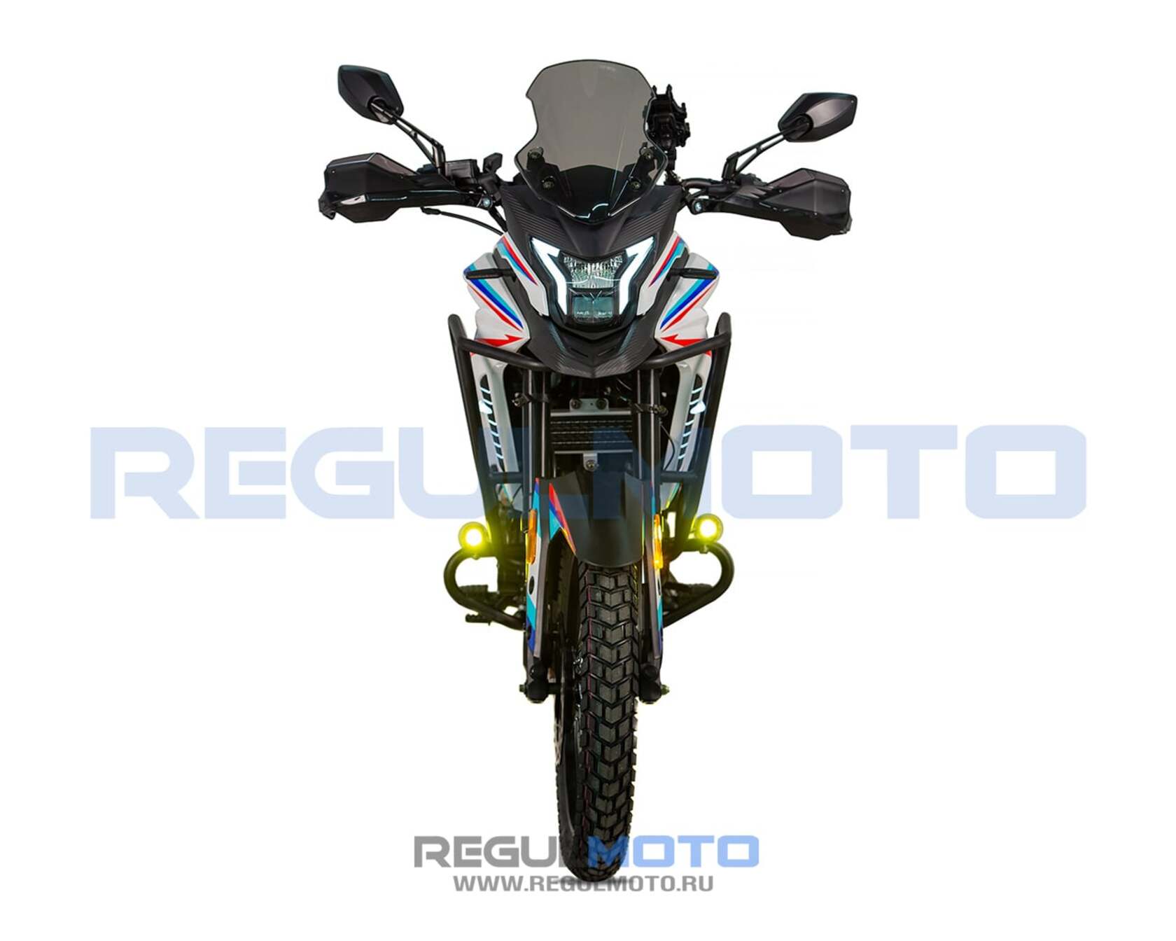 Regulmoto XADV — это современный туристический эндуро, сочетающий в себе комфорт для дальних поездок и отличные внедорожные качества. Модель создана для тех, кто хочет чувствовать себя уверенно как на трассе, так и на сложных грунтовых маршрутах.В основе мотоцикла — надёжный одноцилиндровый 4-тактный двигатель Hensim 174YMN объёмом 279,6 см³, развивающий мощность 28 л.с.. Балансировочный вал снижает вибрации, а система воздушно-масляного охлаждения обеспечивает стабильную работу даже при длительных нагрузках. Топливная система на карбюраторе NIBBI Racing PWK34 и зажигание CDI гарантируют точную подачу топлива и быстрый отклик на газ.Трансмиссия механическая, с 6-ступенчатой коробкой передач, запуск осуществляется удобным электростартером.Подвеска адаптирована для путешествий и лёгкого бездорожья: спереди установлена перевёрнутая телескопическая вилка длиной 940 мм, сзади — надёжный моноамортизатор. Такая комбинация делает езду устойчивой и комфортной на любом покрытии.За безопасность отвечают дисковые гидравлические тормоза: передний диск диаметром 220 мм с двухпоршневым суппортом и задний дисковый тормоз с двухпоршневым суппортом.Колёсная база 1345 мм, высота по седлу 860 мм и удобная эргономика делают XADV доступным для большинства райдеров. Внедорожные колёса размером 90/90-19 спереди и 130/90-17 сзади обеспечивают отличное сцепление как на асфальте, так и на грунтовых дорогах.Большой топливный бак объёмом 13,5 литров позволяет проходить длинные маршруты без частых остановок на заправку, а прочная конструкция выдерживает нагрузку до 150 кг. При этом собственный вес мотоцикла составляет всего 150 кг, что делает его лёгким в управлении.Габариты модели — 2010×930×1220 мм, что в сочетании с компактной рамой делает Regulmoto XADV удобным и манёвренным туристическим эндуро. Основные преимущества:Двигатель 280 см³ / 28 л.с. с балансировочным валомВоздушно-масляное охлаждение для надёжной работы в любых условиях6-ступенчатая механическая коробка передачСовременная подвеска (перевёрнутая вилка 940 мм и моноамортизатор)Дисковые гидравлические тормоза с двухпоршневыми суппортамиВместительный бак на 13,5 литровУдобная посадка: высота седла 860 мм, вес всего 150 кгRegulmoto XADV — это универсальный туристический эндуро для дальних поездок, путешествий и активного отдыха. Он сочетает в себе мощность, комфорт и проходимость, позволяя уверенно чувствовать себя как на шоссе, так и на пересечённой местности.