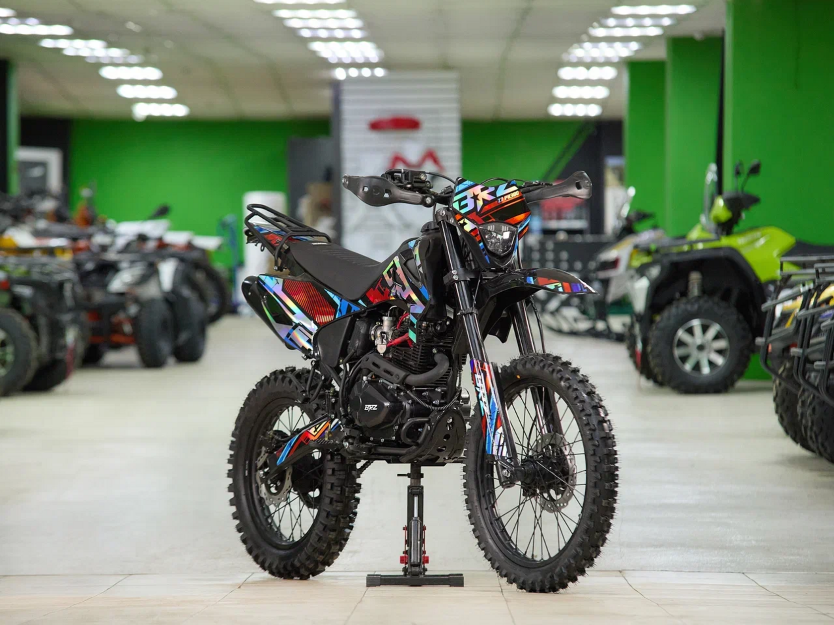 Среднеразмерный мотоцикл BRZ Z7 PR300 21/18. Характеристики:Кубатура – 300ccМощность – 25 л.сДвигатель – Zongshen PR300 172FMM-5 с баланс валом и карбюратором nibbi racing pe30. Воздушное охлаждение.Рама – Стальная рама, пластик тип CRFПодвеска – Передняя вилка без регулировок. Задний моноамортизатор с регулировкой и прогрессией.Размер колес – 21х18Навесное – Руль 28мм.Защита рук. Цепь 520 КМС. Багажник. Подножки второго пассажира.Электрика – АКБ, Электростартер, Фара LED. Приборная панель.Колесная база– 1350Высота по седлу – 890ммРост – от 150Фара – ДаСтартер – Кик + ЭлектростартерРегулируемая подвеска – Задний амортизаторКоробка передач – Механическая 1-n-2-3-4-5Воспользуйтесь уникальной возможностью приобрести этот товар по специальной цене при оформлении предзаказа! Для вашего удобства цена уже указана с учетом специального предложения. Предоплата составляет 100%, срок ожидания поставки — от 90 дней. Остались вопросы? Наш менеджер с радостью проконсультирует вас по всем деталям!