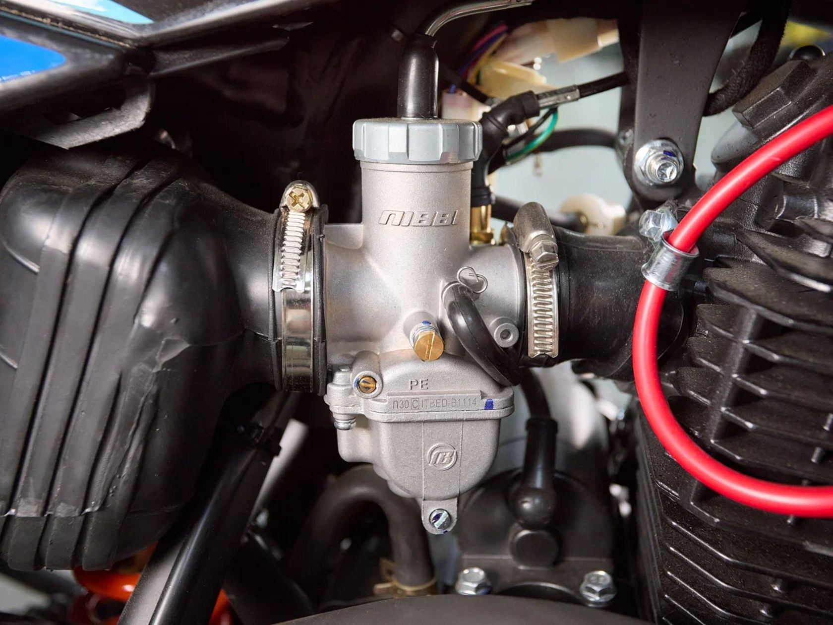 Руль IGP 6061, Пластиковая защита двигателя, Рычаг переключения передач из алюминия, Металлический тормозной рычаг, Рычаги тормоза и сцепления CNC, Грипсы lock on, Спидометр. Цепь 520 КМС. Багажник. Подножки второго пассажира.