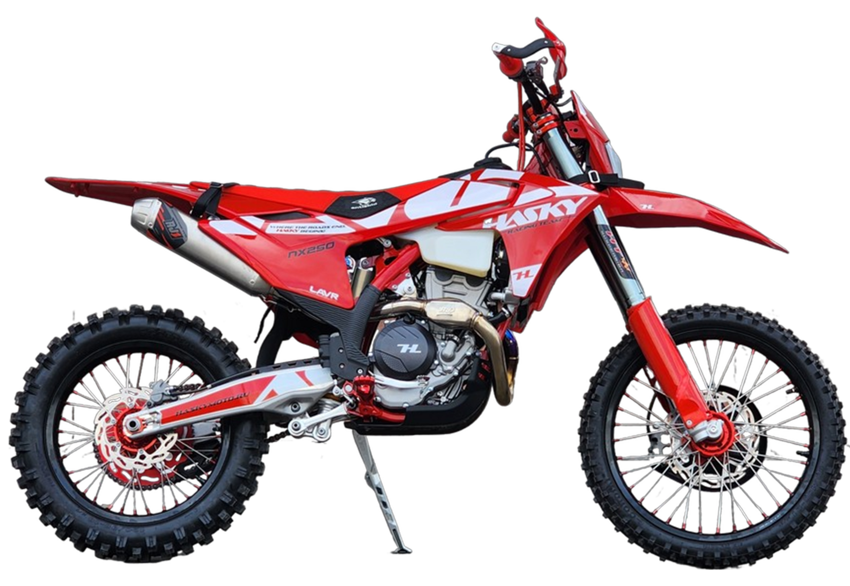 Hasky A10 PRO NX250 – легендарная мощность для настоящих победителейМотоцикл Hasky A10 PRO NX250 воплощает в себе 43 лошадиные силы неудержимой энергии и премиального качества. Этот полноразмерный байк на колесах 21/18 дюймов с новой рамой A10 и пластиком в стиле GasGas 2024 создан для тех, кто стремится к абсолютному лидерству.Сердцем модели стал инжекторный 4-клапанный двигатель ZS178MM-2 с системой Bosch и балансирным валом, выдающий впечатляющие 43 л.с. мощности. Шестиступенчатая коробка передач с электростартером и гидравлическим сцеплением AJ1 обеспечивает мгновенный отклик и полный контроль./paragraf>Подвеска HTW T10 с 48-миллиметровыми перевернутыми вилками закрытого картриджа и прогрессивной характеристикой гарантирует идеальную управляемость. Титановая выхлопная система, траверсы CNC AJ1 двойного охвата и 360-градусная защита перьев вилки демонстрируют внимание к деталям.Тормозная система AJ1 (аналог Brembo) в сочетании с алюминиевыми ободами KKE, фрезерованными ступицами и подшипниками NSK обеспечивает непревзойденную безопасность. Комплектация включает усиленный руль из сплава 7075, пульты KTM, антискользящее сиденье AJ1, пеги и лапку КПП в стиле KTM.Защита двигателя, радиатора, рамы и тормозного диска дополнена буксировочными стропами. Покрышки Cordial на 18-дюймовом заднем и 21-дюймовом переднем колесах с 3-миллиметровыми камерами и фиксаторами AJ1 обеспечивают надежное сцепление.Дополнительные преимущества включают негорючий воздушный фильтр увеличенной площади, полностью влагозащищенную проводку, светодиодную фару с 4 линзами и комплект инструментов.