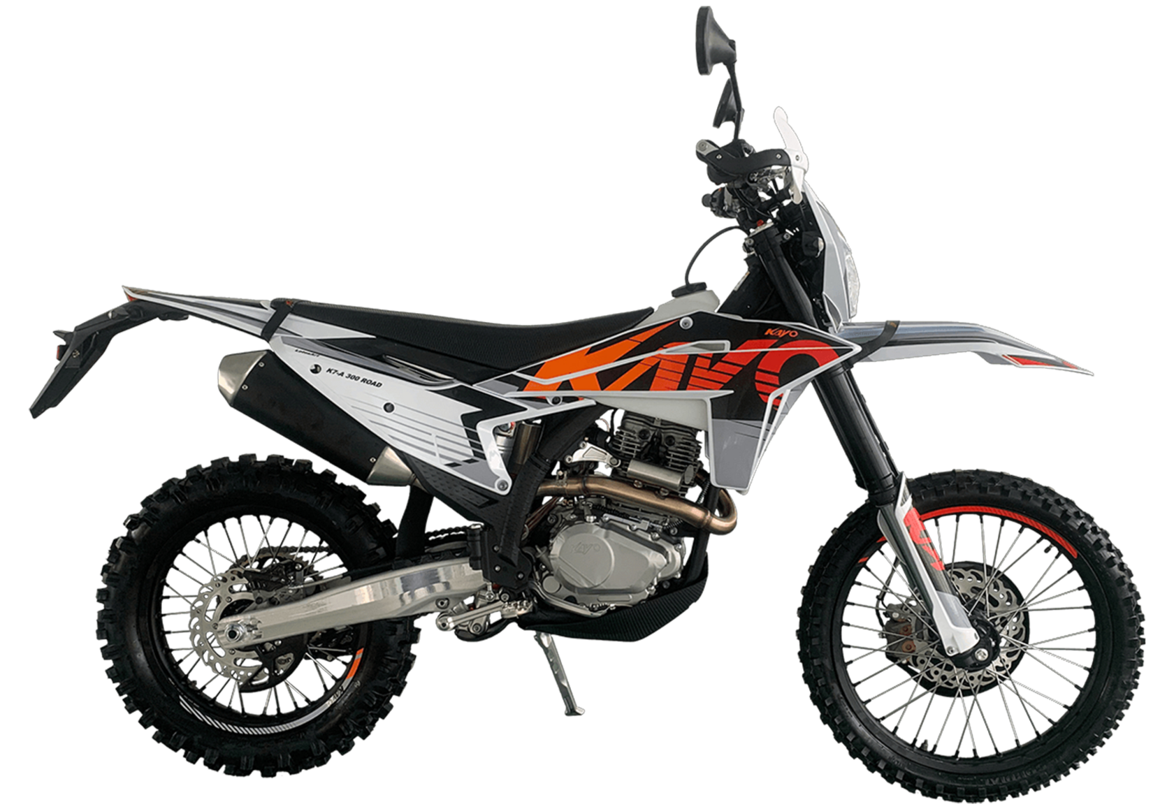 KAYO K7-A 300 Road (CB300RL) 21/18 (2025 г.) ПТС – полноразмерный мотоцикл, воплощение надёжности и стиля.K7-A 300 Road оснащён одноцилиндровым 4-тактным, 4-клапанным двигателем объёмом 271,3 см³ с балансирным валом и воздушным типом охлаждения. Диаметр и ход поршня 75x61,4 мм, степень сжатия 9,18:1. Двигатель выдаёт 26 л.с. на 8500 об/мин и 23 Н·м максимального крутящего момента на 6500 об/мин. Карбюратор NIBBI PWK34.CDI-зажигание и электростартер гарантируют быстрый запуск и плавную работу двигателя. 6-ступенчатая механическая коробка передач и надёжный цепной привод. Топливный бак на 9 литров.Передняя регулируемая ККЕ подвеска 950 мм с открытым картриджем и задняя подвеска 460 мм гарантируют отличную управляемость и гашение вибраций.21-дюймовое переднее колесо и 18-дюймовое заднее с ободами GLM. Ступицы и траверсы из фрезерованного алюминия. Гидравлические дисковые тормоза спереди и сзади обеспечивают точное и уверенное торможение.K7-A 300 Road продуман до мелочей, чтобы быть универсальным и практичным: наличие ПТС, цифровая приборная панель отображает всю необходимую информацию, звуковой сигнал и указатели поворота, а зеркала заднего вида и задняя багажная платформа добавляют функциональности. Пассажирские подножки для комфортных поездок вдвоём.Защита рычагов и рук. Пластиковые защитные элементы для двигателя, рычагов, днища, рамы и рук райдера предотвращают повреждения в экстремальных условиях.Прогрессия, задний маятник и руль Fatbar из прочного алюминия.Габариты 1850x760x1060 мм, высота седла 960 мм. Колёсная база 1500 мм добавляет стабильности на высоких скоростях. Сухая масса в 120 кг. Дорожный просвет 300 мм.KAYO K7-A 300 Road (CB300RL) 21/18 (2025 г.) ПТС – отличный выбор для тех, кто ценит надёжность и экстремальные возможности мотоцикла.