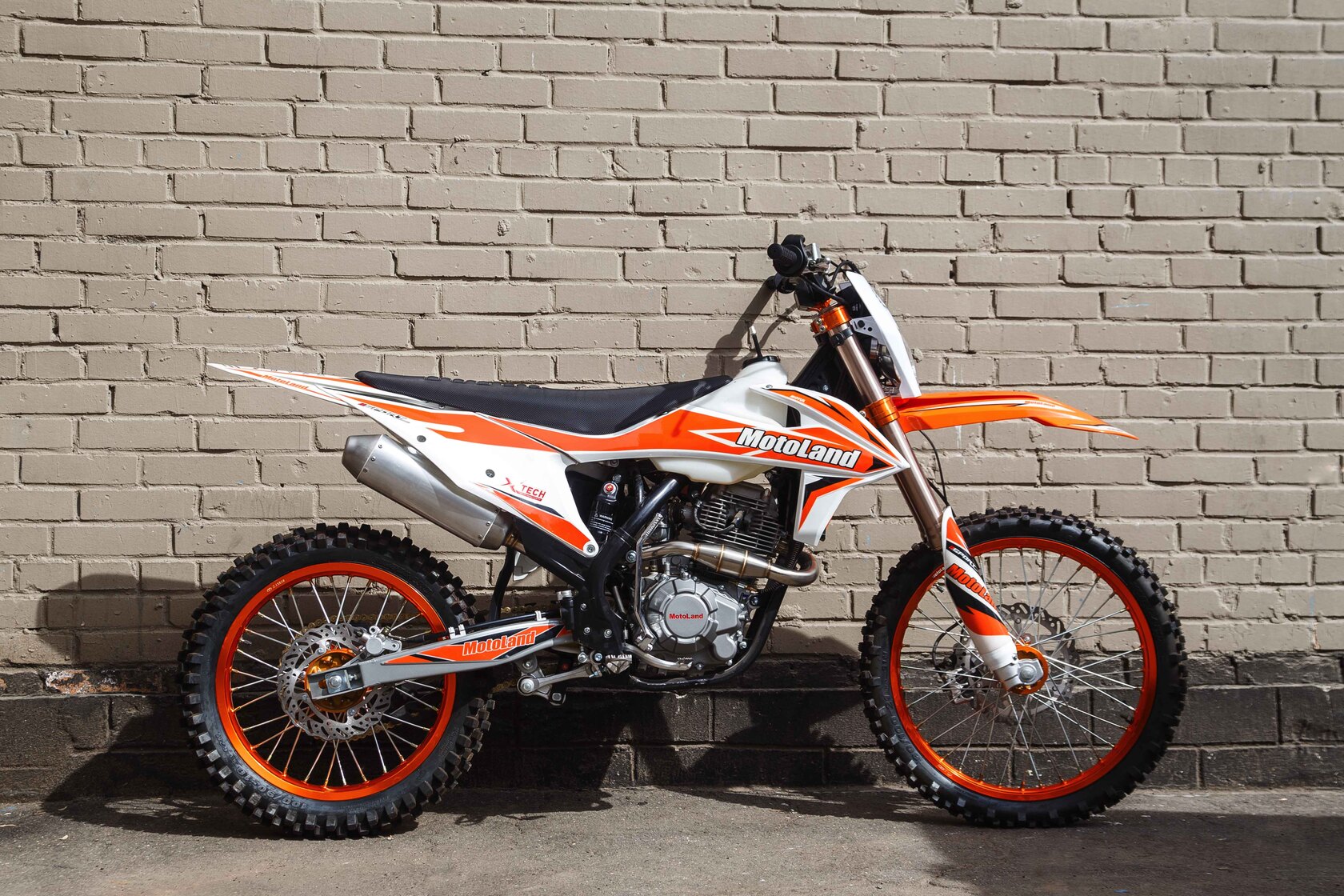 Представляем вам мотоцикл Motoland 250 SX250 . Он подойдет для новичков в мотокроссе и участников любительских соревнований. Колеса диаметром 21/18 идеально подходят для езды по бездорожью, а также по мягкому и средней жесткости грунту. Подвеска GPX позволяет с легкостью преодолевать ухабы, ямы и другие неровности. Мотоцикл оснащен LCD- приборной панелью, прямоточным глушителем, механической пятиступенчатой коробкой передач и двигателем ZONGSHEN 172FMM-3А мощностью 21 лошадиная сила, который способен развивать скорость до 120км/ч. За счет формы, дизайна и цвета пластика SX250 модель внешне похожа на мотоциклы марки KTM. У нас Вы можете купить этот мотоцикл с бесплатной доставкой по РФ и гарантией до года. Также его можно приобрести в рассрочку или в кредит.
