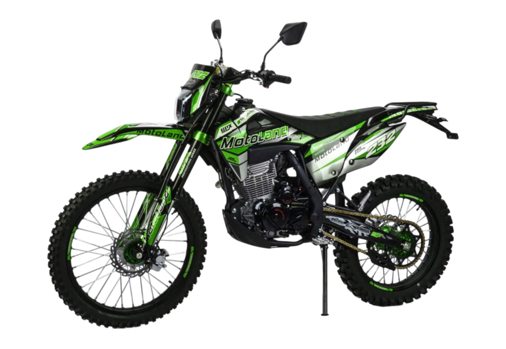 Мотоцикл Кросс 300 XT300 HS (175FMM PR5) это отличный кроссовый мотоцикл. Имеет хорошую проходимость и тяговую мощность за счет установленного двигателя с балансиром, мощностью 24 л.с., и карбюратором NIBBI PE 30.Разгоняется до 140 км/ч. Выхлопная система с резонатором, глушитель алюминиевый. Идеален для бездорожья, т.к. его кроссовые шины (110-100) и (80-100) просто созданы для езды по мягкому и среднему грунту.Телескопическая вилка перевернутого типа GPX с усиленными траверсами позволяет легко преодолевать ямы, ухабы и другие неровности. Задняя подвеска маятниковая с прогрессией, с моноамортизатором.Его дерзкий дизайн подчёркивает неуступчивый спортивный характер байка.Мотоцикл весит 120 кг, выдерживает нагрузку до 150 кг. Прочный облицовочный пластик не ломается при сгибании, защищает от грязи. Надёжно закрепленный руль имеет переменное сечение: 28 мм в месте крепления и 22 мм на концах под грипсами, а также короткоходную ручку газа. Покрышки на алюминиевых ободах оснащены усиленными спицами и антибуксаторами, размер заднего колеса — 18 дюймов, переднего — 21 дюйм, крепятся на полые оси.Для запуска двигателя можно использовать электростартёр или кикстартёр. Система зажигания электронная (CDI). Механическая трансмиссия содержит 5 передач. У мотокросса отличный запас хода: объём топливного бака — 7 л, расход топлива — 5 л на 100 км. Передняя светодиодная линзованная фара обновленного дизайна легко включается поворотом замка зажигания и позволяет ездить в сумерках и темноте, оборудован зеркалами заднего вида. Защита картера. Нейлоновая защита рамы. Цепь 520 с ловушкой.Мотоцикл оснащён надёжными тормозами с передним двухпоршневым тормозным суппортом и задним однопоршневым тормозным суппортом. Передний тормозной диск оборудован защитой.