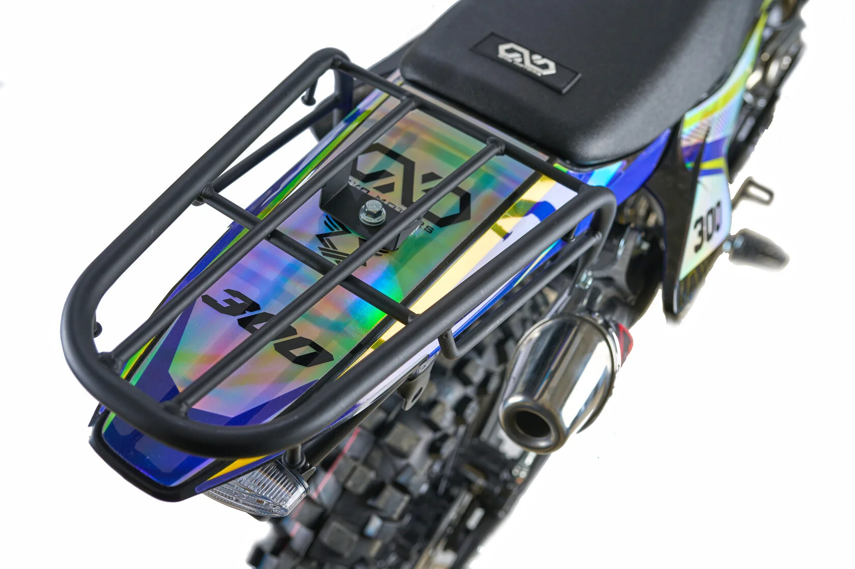 ДвигательДвигатель ZS175FMN 271 куб см с воздушным охлаждением выдаёт максимум мощности. Характеризуется хорошей тягой с самых низов и лёгким пуском с помощью электростартера. Повышенная износостойкость и качественные детали изделия позволяют применять к нему самые жёсткие требованияРамаРама мотоцикла OXO производится из труб шестигранного сечения хром-молибденовой стали, которая является очень прочной и легкой. Геометрия рамы, благодаря правильно выверенному центру тяжести и углу наклона вилки - способствует наилучшей управляемости устойчивости мотоцикла на низкой скорости.ПодвескаПередняя вилка перевернутого типа. Мотоцикл LITE 300 снабжен моноамортизатором, который соединен посредством системы рычагов прогрессии. Система прогрессии, обеспечивает равномерную, мягкую работу и увеличивает длину рабочего хода подвески.КолесаВ переднем и заднем колесах установлены антибуксаторы, которые притягивают покрышку к ободу, позволяя ездить по бездорожью при низком давлении в камерах, не давая покрышке проворачиваться во время езды.Размер передней покрышки: 80/100-21. Размер задней покрышки: 120/100-18. Они прекрасно себя ведут по песку и грязи, что позволяет райдеру отлично показать себя на пересеченной местности.Тормозная системаТормозная система мотоцикла - полностью гидравлическая с армированными шлангами. Спереди установлены двухпоршневой суппорт. Задняя тормозная система представлена в виде однопоршневого суппорта. Данная конфигурация тормозных механизмов, позволит быстро и безопасно остановиться с максимальной скорости даже на бездорожье.РульВажная часть современного эндуро мотоцикла - усиленный руль переменного сечения. Алюминиевая ручка газа с коротким ходом имеет регулировку троса. Также мотоцикл укомплектован электронной панелью приборов.Воспользуйтесь уникальной возможностью приобрести этот товар по специальной цене при оформлении предзаказа! Для вашего удобства цена уже указана с учетом специального предложения. Предоплата составляет 100%, срок ожидания поставки — от 90 дней. Остались вопросы? Наш менеджер с радостью проконсультирует вас по всем деталям!