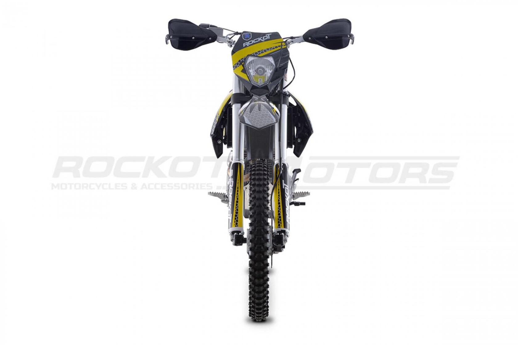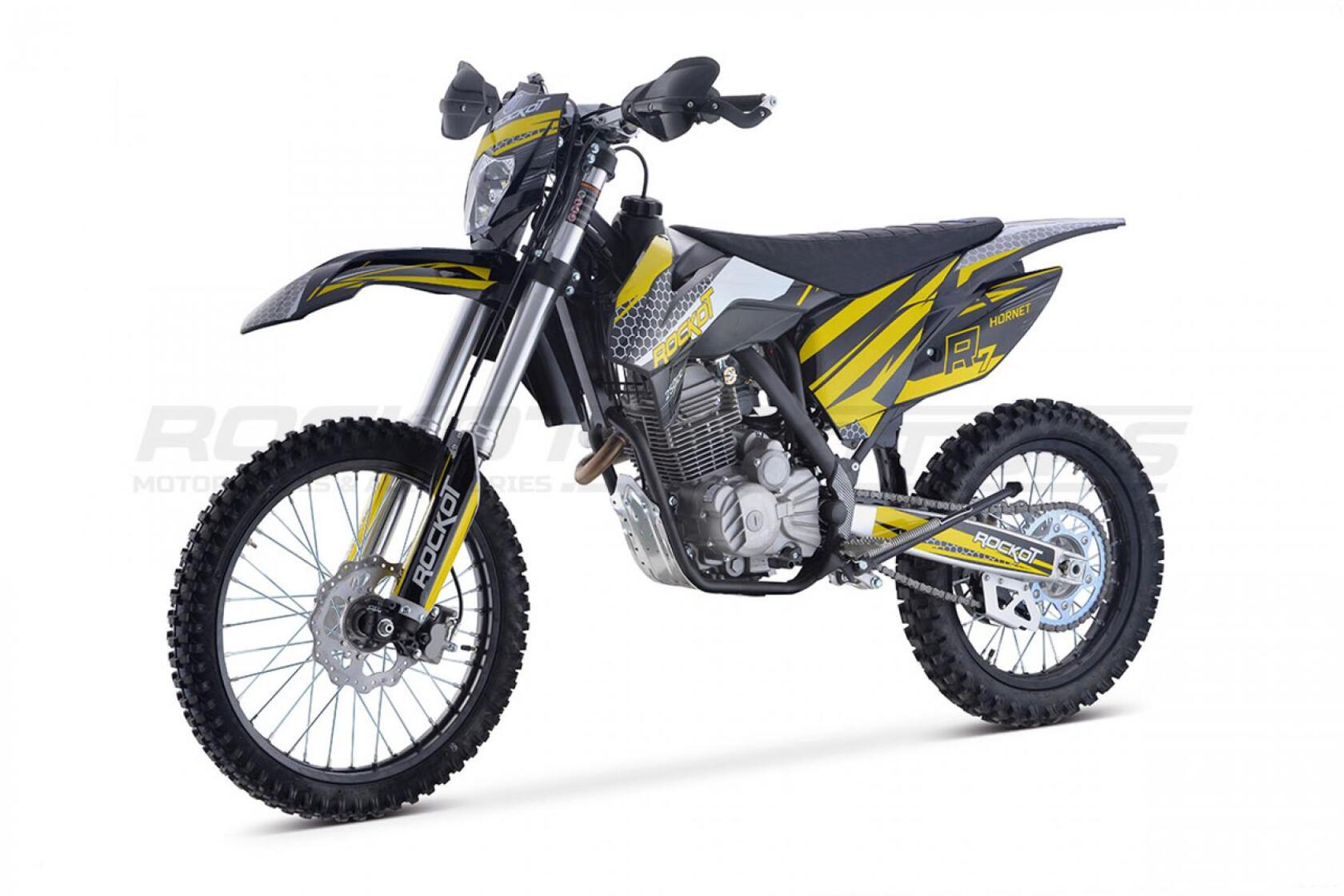 Мотоцикл ROCKOT R7 (HORNET) - полноразмерный эндуро мотоцикл. Он специально создан для райдеров, которые уже выросли из питбайка и хотят раздвинуть свои пределы. Он подойдет и начинающим эндуристам с ростом от 170 см. ROCKOT R7 идеально себя чувствует в лесных прохватах с преодолением различных препятствий благодаря небольшому весу, тяговитому двигателю и большим колесам 21/18. Мотоцикл максимально упрощен для большей надежности. Из электрики он снабжен лишь светодиодной фарой электростартеромПу сути в нем просто нечему ломаться, можно смело ездить в лесные мото походы на 40 - 200 км. Инженеры Rockot учли все ошибки конкурентов и снабдили мотоцикл качественными подвесками и алюминиевыми ободами. Был переработан узел верхнего крепления двигателя к раме, избавивший от повышенных вибраций. Ведомую звезду закрепили на 6 потайных болтов. Ну и не стали экономить на карбюраторе - в базе установлен NIBBI PE 30! Подведя итог можно смело заявить что R7 - идеальный выбор для тех, кто хочет купить бюджетный эндуро мотоцикл!У нас Вы можете купить этот мотоцикл с бесплатной доставкой по РФ. Также его можно приобрести в рассрочку или в кредит.