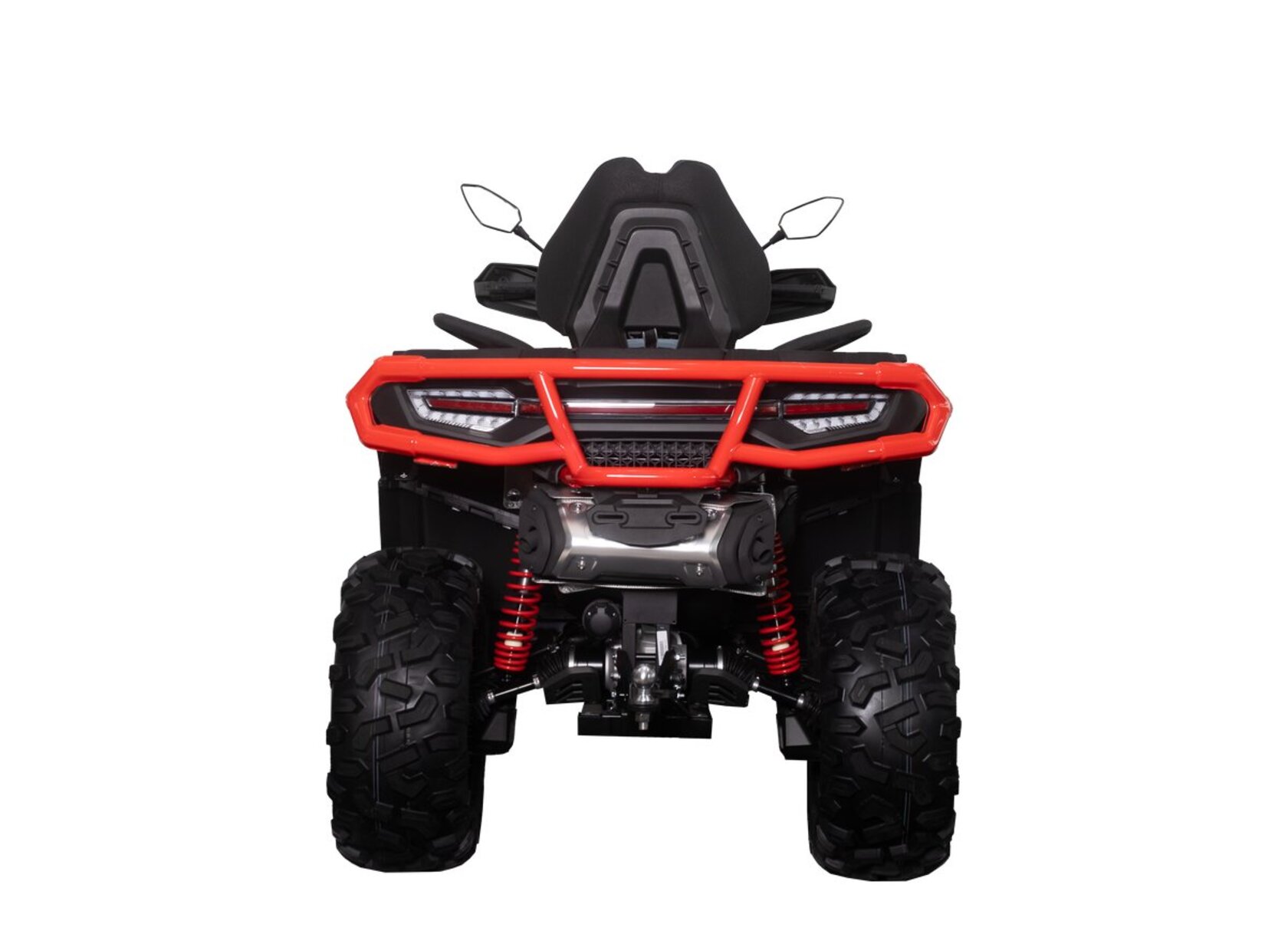 Электрическая лебедка 3500 LBS, зеркала заднего вида, съемная пассажирская секция, алюминиевые упоры для ног водителя и пассажира, передние и задние грузовые площадки повышенной грузоподъемности, цветные силовые задний и передний бамперы, аккумулятор повышенной емкости (30Ач), электрическая розетка 12В, разъемы USB Type A/Type C, съемный фаркоп
