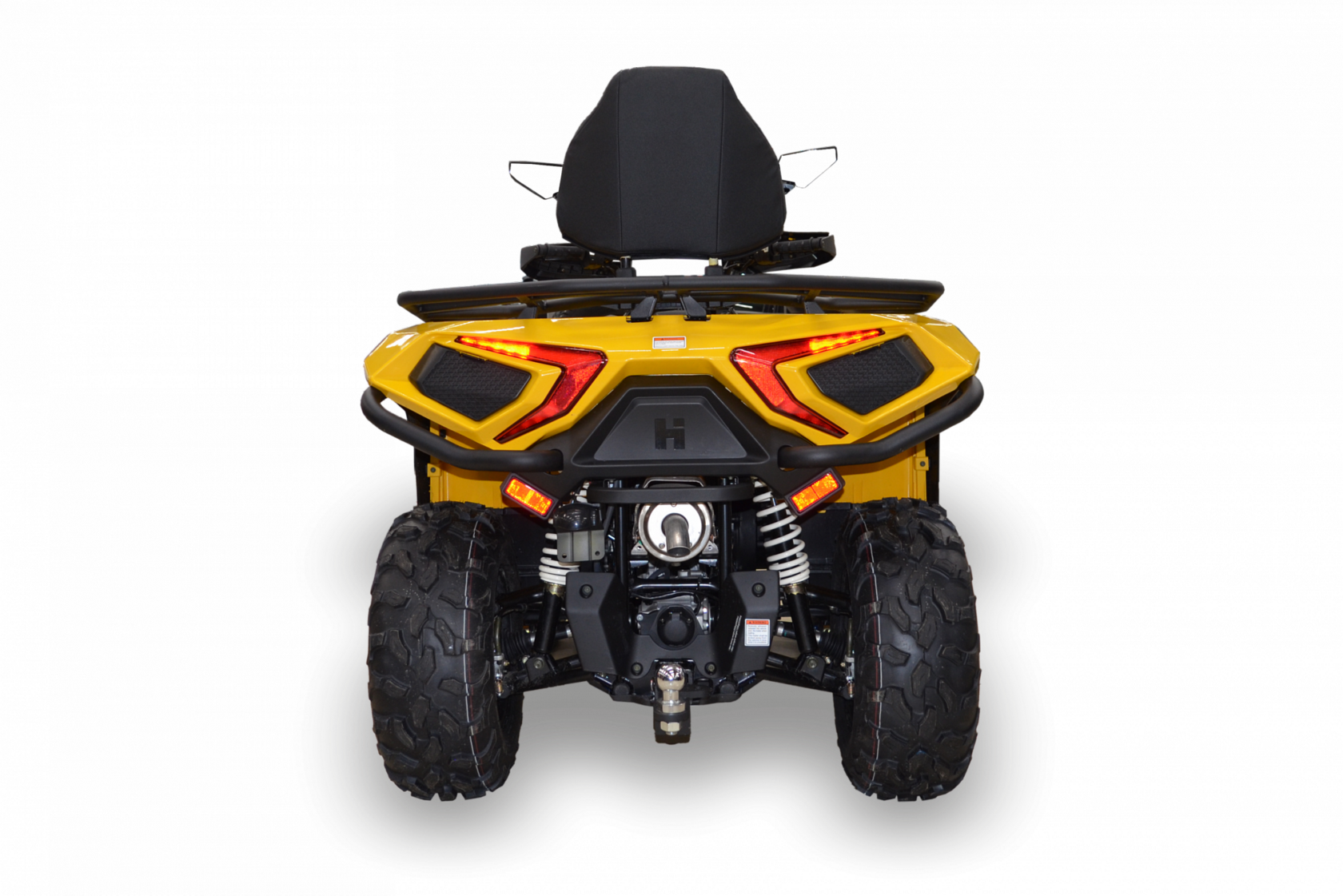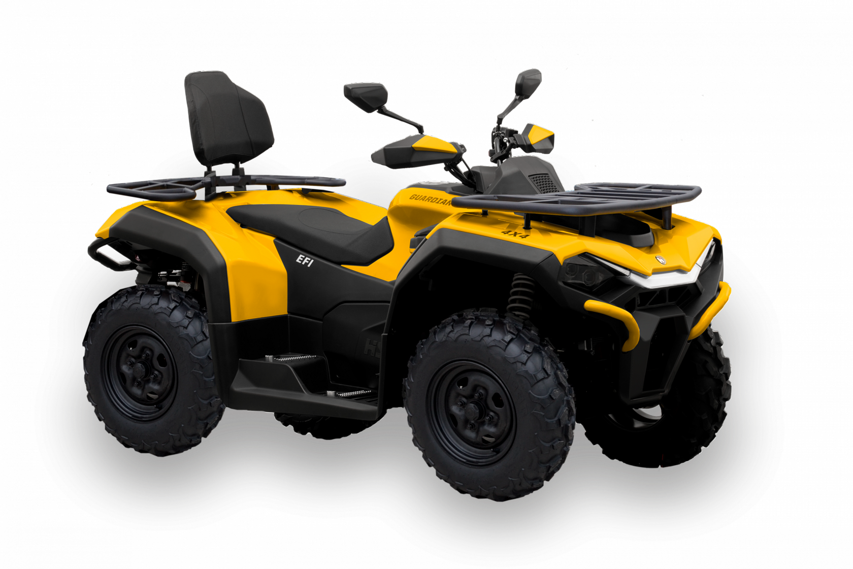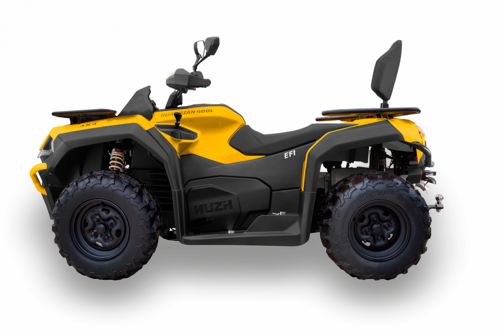 Представляем новый квадроцикл HiSUN GUARDIAN 400 L. Его девиз – надежность, проходимость, комфорт и маневренность. Он оснащен всем необходимым для вашего удобства: цифровая панель приборов, светодиодная оптика, передний и задний багажники, металлические бамперы, защита рук и зеркала заднего вида. Одним из ключевых преимуществ техники HiSUN является мощный четырехтактный двигатель, который позволяет занимать лидирующие позиции в своем классе.Современные светодиодные LED-фары обеспечивают яркое освещение дороги, что способствует безопасности передвижения в темное время суток, а крупный протектор колес обеспечивает отличное сцепление с грунтом. Удобная эргономика гарантирует высокий уровень комфорта как для водителя, так и для пассажира, а вместительный бензобак и экономичный расход топлива порадуют любого владельца!Преимущества моделиЦифровая панель приборов (7’, TFT Display)Двигатель бензиновый 4-х тактный с системой электронного впрыска топлива EFIАвтоматическая трансмиссия. ВариаторВентилируемые диски тормоза спереди и сзадиЛёгкое и стабильное рулевое управлениеНезависимая подвеска, сдвоенная на двух А-образных рычагахДорожный просвет 275 ммПередние и задние багажные площадкиСветодиодные фары и задние фонариУлучшенная грязезащита