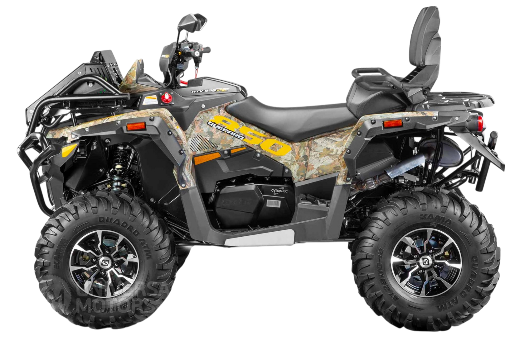 Мощь флагманского двигателя 850 см³: Сердце квадроцикла — невероятно мощный и тяговитый двигатель, который обеспечивает уверенное движение по грязи, песку, снегу и крутым подъемам. Вариаторная коробка передач (CVT) делает управление простым и интуитивным, а выносной радиатор гарантирует стабильное охлаждение даже на самых низких скоростях.