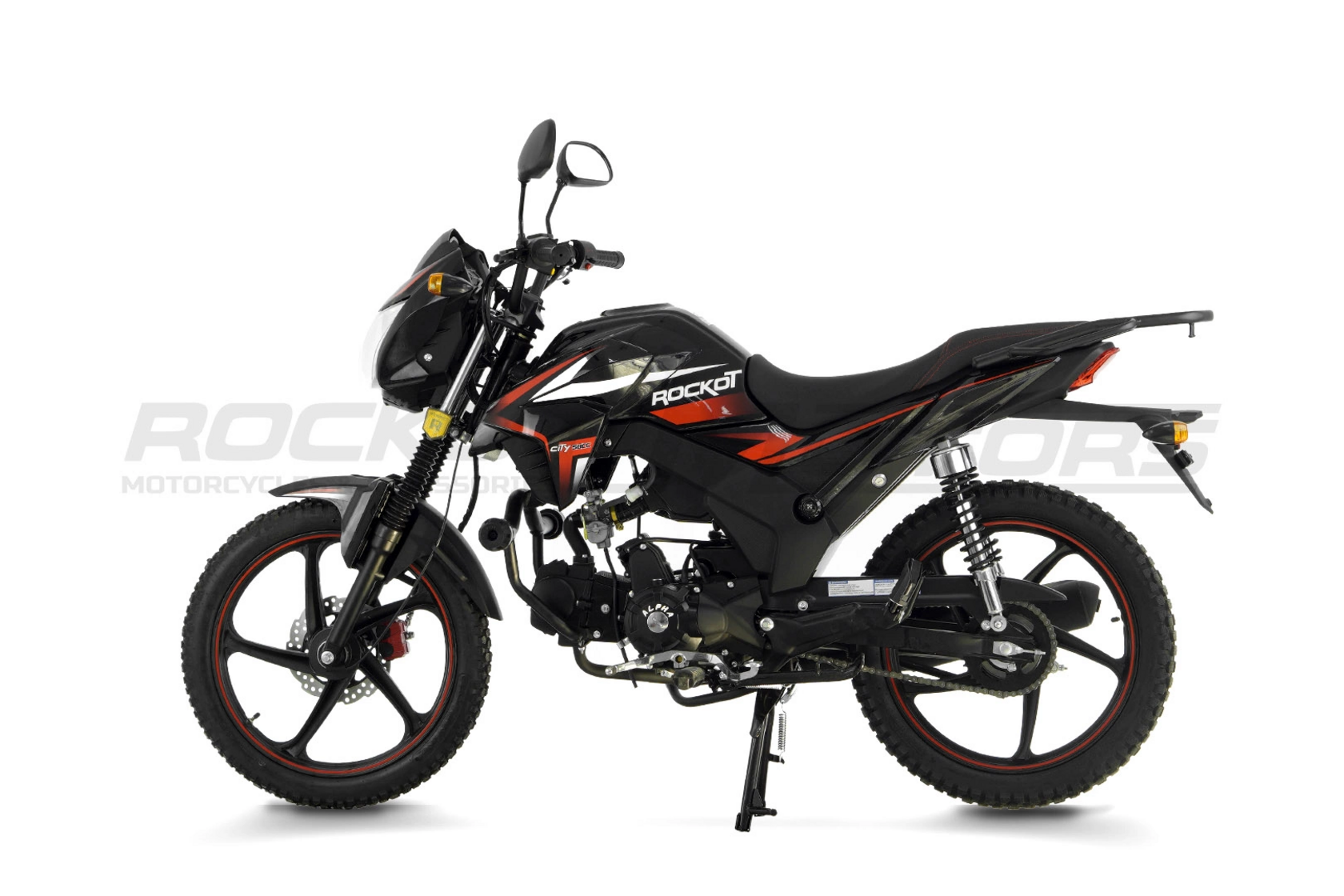ROCKOT ALPHA CITY M-12 представляет собой обновленную модель легендарного мопеда Альфа, разработанную для городских условий. Внешний вид мопеда кардинально изменен, что делает его похожим на настоящий городской мотоцикл, что выделяет его среди других моделей.Стильный дизайн включает в себя современный облицовочный пластик, обтекатель фары и оригинальный глушитель, поднимающийся от заднего колеса. Светодиодная фара обеспечивает отличное освещение в темное время суток, а монохромная жидкокристаллическая приборная панель позволяет легко считывать необходимые данные.Мопед оснащен четырехтактным двигателем с горизонтальным цилиндром объемом 49 кубических сантиметров. Четырехступенчатая коробка передач и возможность запуска как с помощью кик-стартера, так и электростартера делают эксплуатацию удобной. Также в комплекте идет тюнинг-комплект для увеличения объема до 125сс, который устанавливается без замены коленчатого вала.ROCKOT ALPHA CITY M-12 представляет собой обновленную модель легендарного мопеда Альфа, разработанную для городских условий. Внешний вид мопеда кардинально изменен, что делает его похожим на настоящий городской мотоцикл, что выделяет его среди других моделей.Стильный дизайн включает в себя современный облицовочный пластик, обтекатель фары и оригинальный глушитель, поднимающийся от заднего колеса. Светодиодная фара обеспечивает отличное освещение в темное время суток, а монохромная жидкокристаллическая приборная панель позволяет легко считывать необходимые данные.Мопед оснащен четырехтактным двигателем с горизонтальным цилиндром объемом 49 кубических сантиметров. Четырехступенчатая коробка передач и возможность запуска как с помощью кик-стартера, так и электростартера делают эксплуатацию удобной. Также в комплекте идет тюнинг-комплект для увеличения объема до 125сс, который устанавливается без замены коленчатого вала.Рама мопеда отличается легкостью и прочностью, что обеспечивает хорошую управляемость, даже для новичков, и возможность поездок с пассажиром.Спереди установлена телескопическая подвеска, а сзади – два амортизатора с регулировкой преднатяжения пружин, что позволяет адаптировать жесткость под различные условия эксплуатации. Большой рабочий ход подвески делает мопед подходящим для бездорожья.Тормоза мопеда включают спереди дисковый гидравлический тормоз с двухпоршневым суппортом, а сзади – механический барабанный тормоз, что обеспечивает надежное торможение в любых условиях.Мопед оборудован литыми дисками и покрышками диаметром 17 дюймов с универсальным протектором, что позволяет использовать его как на городских дорогах, так и на бездорожье. Ширина шин (передняя 2.50, задняя 2.75) обеспечивает отличную управляемость.
