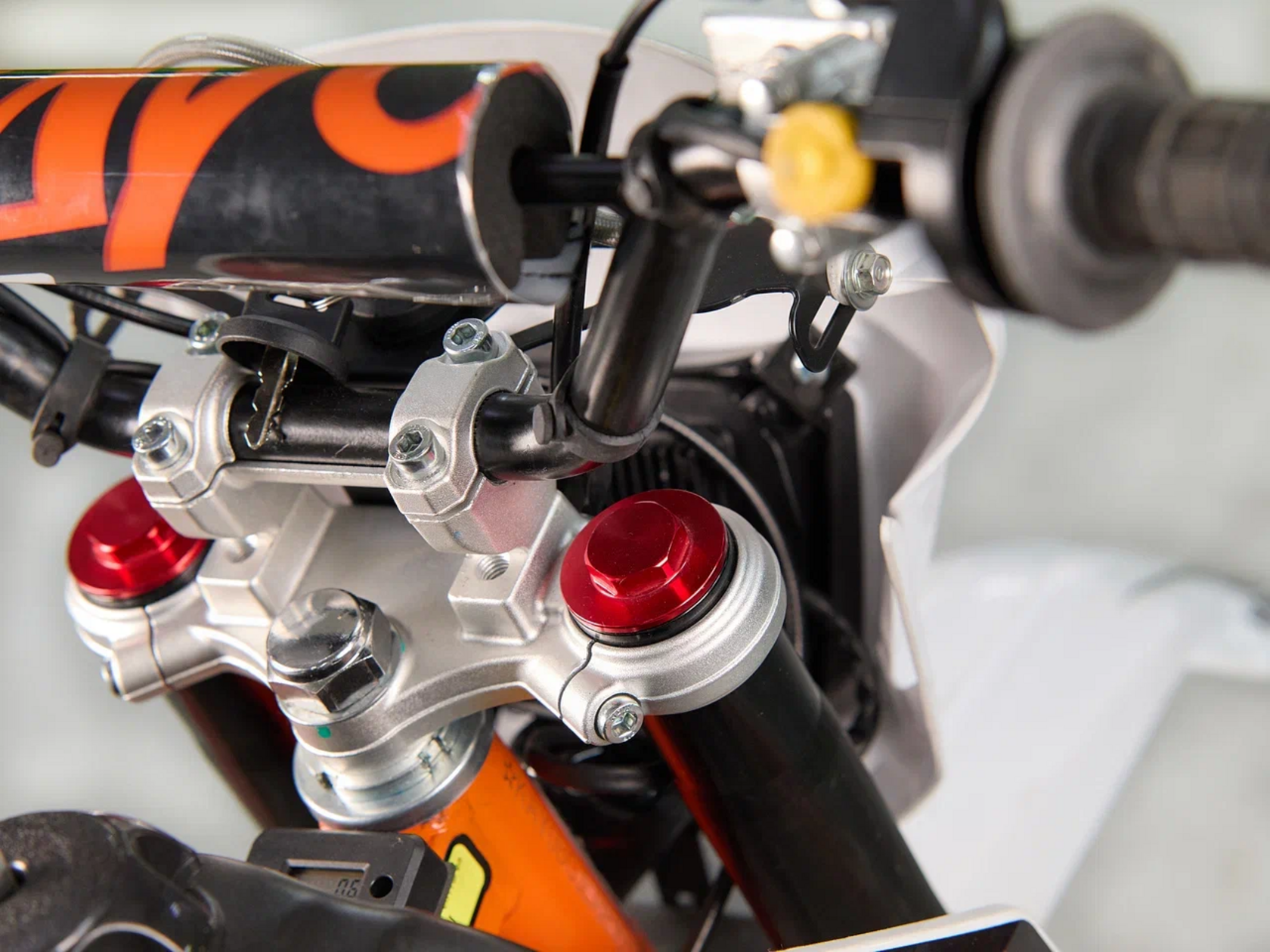 Питбайк KAYO Basic K125EM KRZ – идеальный снаряд для наработки первого опыта в мотокроссе и эндуро, который можно использовать на лёгких кроссовых трассах и дорогах с различным покрытием. Удобный, простой и надёжный мотоцикл, который полностью оправдывает свою цену.Одноцилиндровый 4-тактный двигатель воздушного охлаждения объёмом 125 см3, выдаёт 9 л.с. Карбюратор NIBBI PE19 обеспечивает бесперебойную работу техники в самых жёстких условиях эксплуатации, простоту и лёгкость в обслуживании, а также неприхотливость к качеству топлива. Питбайк оснащён механической 4-ступенчатой коробкой передач с формулой “N-1-2-3-4”.Мотоцикл имеет вес всего 72 кг. Усиленная рама из хром-молибденового сплава и подвеска позволяют эффективно амортизировать удары при езде по неровностям и препятствиям на трассе. Передняя подвеска — телескопическая вилка перевёрнутого типа длиной 770 мм, задняя — моноамортизатор длиной 360 мм. Оба компонента подвески являются нерегулируемыми. Рама и пластик являются собственной разработкой производителя. Мотоцикл оснащён классическими стальными спицованными колёсами диаметром 17 дюймов спереди и 14 дюймов сзади. Эффективное и безопасное замедление с любых скоростей обеспечивают гидравлические дисковые тормоза.Высококачественная износостойкая резина с развитым протектором отлично держит дорогу на различных типах покрытия. Байк оснащён как системой запуска двигателя при помощи кнопки электростартера, так и рычагом кик-стартера. Питбайк имеет вместительный топливный бак на 5,5 л, что гораздо больше, нежели у других байков этого класса.Питбайк оснащён стальной защитой картера и яркой светодиодной линзованной фарой.Если вы ищете послушный, компактный, шустрый и красивый питбайк, считайте, что вы его нашли. Это один из лучших мотоциклов для обучения и первых шагов в эндуро и мотокроссе. Он отлично подойдёт как для гонок на трассе, так и для покатушек по пересечённой местности.