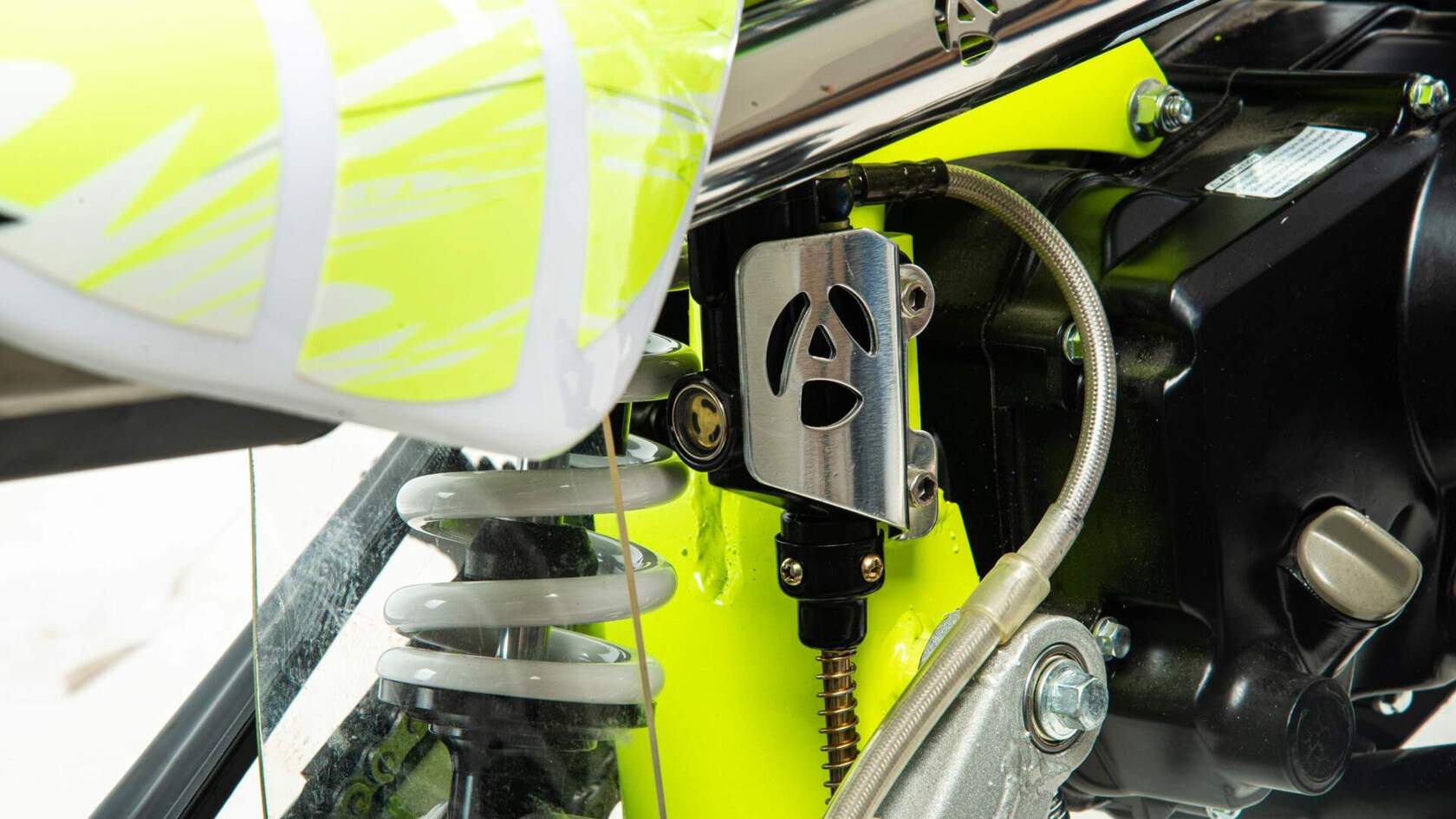 Передняя подвеска — телескопическая нерегулируемая вилка перевёрнутого типа, которая отлично подходит для преодоления ям, ухабов и других неровностей плохих дорог или их отсутствия.