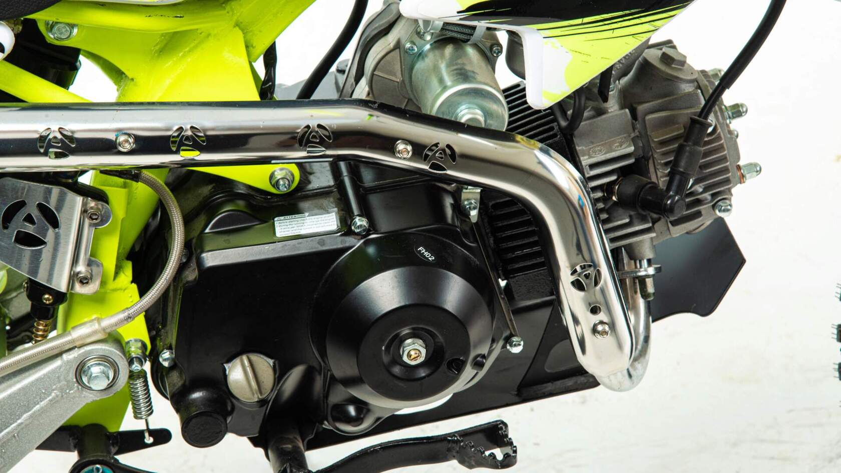 Задняя подвеска маятниковая с моноамортизатором. Руль 22 мм с высоким подъёмом и перекладиной удобен для мотоциклистов разного роста.