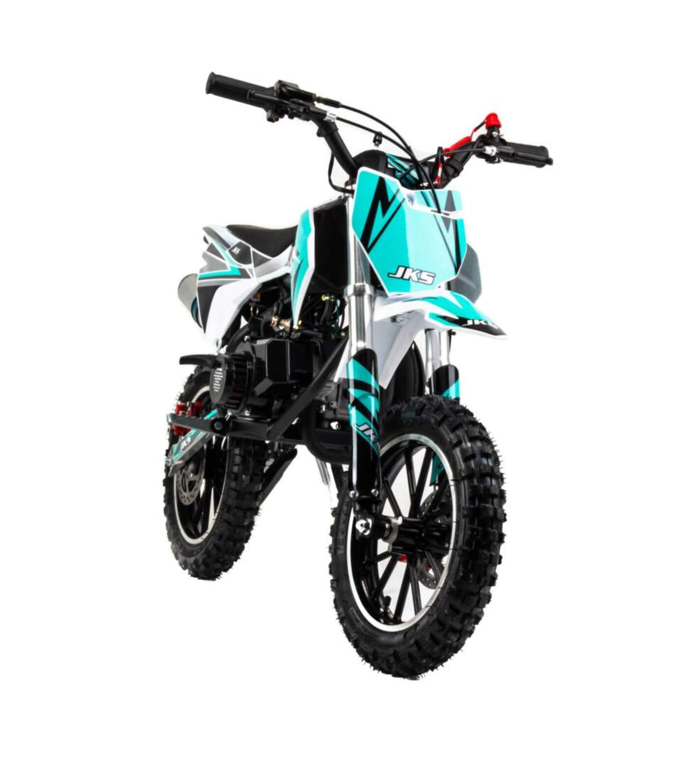 1Детский питбайк MotoLand 50 JKS50 E предназначен для детей от 3 до 7 лет, которые только начинают изучать мотоцикл и технику езды. Особенности модели:50 кубовый, 2-х тактный мотор с вариатором (автоматическая трансмиссия), простой в обслуживании, легкий в обращении, дал газу и поехал, мощность 2,5 лс. Легко справится с весом ребенка и в тоже врем не позволить развить опасную скорость.Для безопасности имеется чека отключения двигателя, если ребенок отпускает руль, то мотоцикл практически сразу отключается при разрыве чеки.Дисковые надежные тормоза.Система запуска - электростартер / ручной стартер.Максимальная скорость 30 км/чСистема смазки: Бензин с маслом (25:1 (бензин/масло) 40гр 2-х тактного масла на 1 литр 92 бензина).Объем топливного бака: 1 л.Расход топлива: 1 л./час.Вес: 25 кг. (собранный)27 кг. (в упаковке)Ручной стартер: обновленный механизм, усилие на запуск снижено в несколько раз. (ребенок 4-5 лет сможет самостоятельно завести)