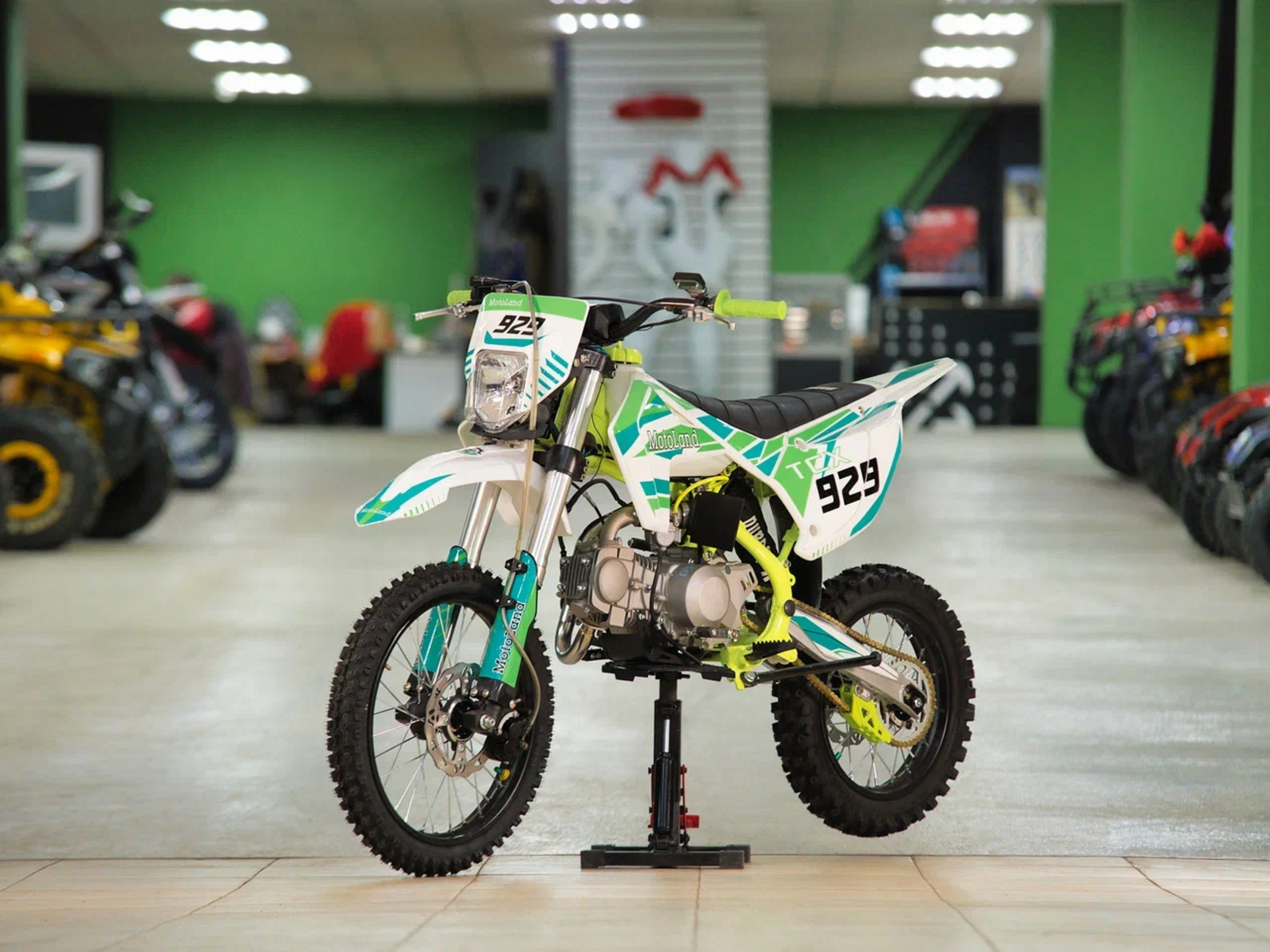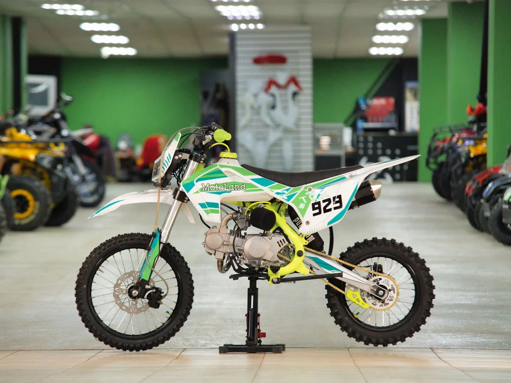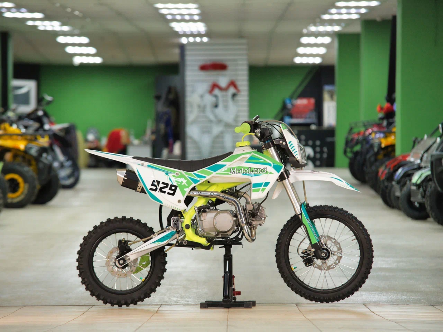 Питбайк Motoland TCX125 14/12 идеален для поездок по грунтовым дорогам и бездорожью. Хорошо чувствует себя на мягком и среднем грунте, разгоняется до 90 км/ч. Оснащён спортивными траверсами, весит всего 70 кг.Питбайк прост в управлении и не требует специального ухода, подойдёт как новичкам, так и любителям мотокросса.Питбайка отличный узнаваемый дизайн. Конструкция подчёркивает неуступчивый спортивный характер, который не остановится ни перед одним препятствием.Комбинированный прочный пластик не ломается при сгибании.Передняя подвеска — телескопическая вилка перевёрнутого типа (с регулировкой по давлению воздуха), которая отлично подходит для преодоления ям, и других неровностей плохих дорог или их отсутствия. Задняя подвеска маятниковая с моноамортизатором. Мотоцикл оснащён одноцилиндровым четырёхтактным двигателем с воздушным охлаждением. Надёжный мотор 152FMI мощностью 8 л. с. и объемом 125 см³ , установленный на усиленной стальной раме, коробка передач автоматическая, четырёхступенчатая.Тормоза дисковые, передний тормозной суппорт двухпоршневой, задний — однопоршневой.Питбайк относится к недорогим моделям, которые при должной эксплуатации работают без сбоев. Не занимает много места в гараже. При необходимости в нём легко сменить любую повреждённую деталь.