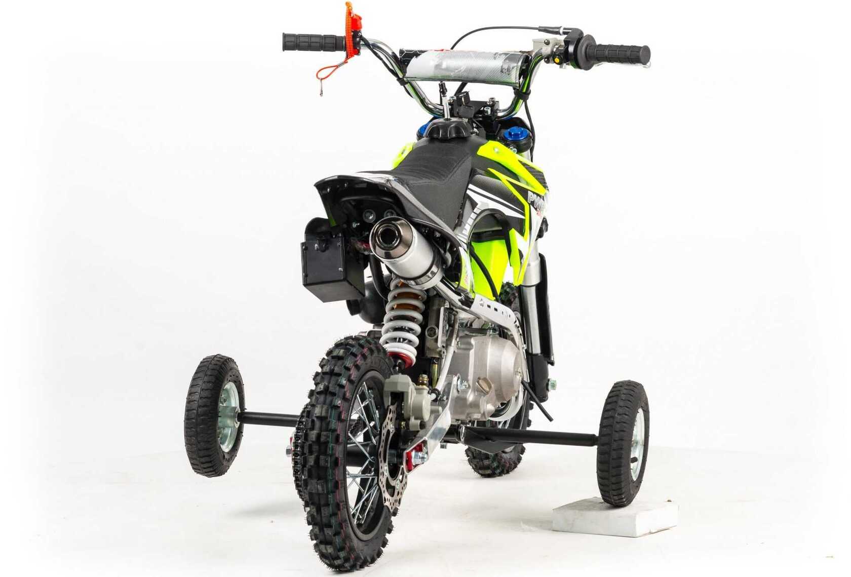 Маленький, компактный, но простой, с приятным внешним видом.Разработанный как первый мотоцикл для вашего ребенка.Двигатель с автоматической трансмиссией, который не требует переключения скоростей и выжима сцеплений, просто повернул газ и поехал, так же имеется электростартер который облегчает запуск двигателя.Безопасность на детском велосипеде - это обязательная функция: чека безопасности, которая выключает зажигание, если ваш ребенок упадет или слезет с мотоцикла, в сочетании с регулируемым ограничителем газа обеспечивает полный родительский контроль над велосипедом.Так-же имеются дополнительные колеса поддержки, для самых юных гонщиков.