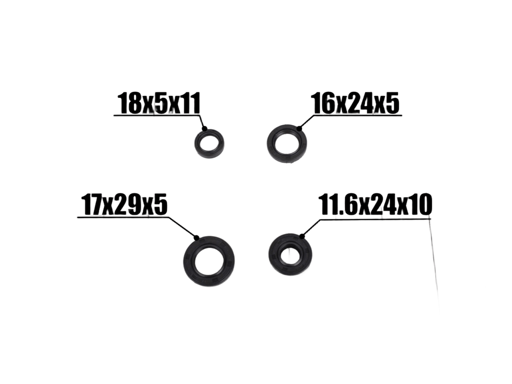 Полный комплект сальников, предназначенный для обслуживания и ремонта двигателей YX и ZS объёмом 140, 150 и 160 см³. Все элементы изготовлены из качественных и стойких к маслам и температурным нагрузкам материалов, обеспечивают надёжную герметизацию и защиту от протечек.
