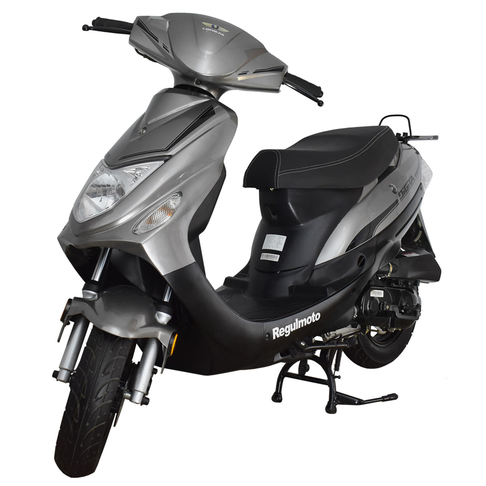 Питбайкмаркет представляет вниманию поклонников практичной и доступной мототехники мопед Regulmoto Digita 50 (LJ50QT-3L) . Эта популярная модель 50-кубового скутера успешно продается в Европе, в частности мопед пользуется стабильным спросом среди покупателей Англии благодаря привлекательной цене и оптимальной комплектации.Мопед Regulmoto Digita 50, представляемый нашей компанией в России, также широко известен экспертам мотоиндустрии под именем Longjia LJ 50 QT-3L. Мини-скутер можно рекомендовать для всех, кто делает самые первые шаги в получении навыков управления двухколесной мототехникой или имеет небольшой опыт. Невысокая стоимость мопеда может быть одним из главных привлекательных моментов, но не стоит забывать и о других достоинствах этой мототехники.Еще одно неоспоримое преимущество – очень простой и надежный, как скала, 4-тактный двигатель объемом в 49см3. Мотор с воздушным охлаждением не отличается высокой мощностью, однако очень экономичен, нетребователен к обслуживанию и обладает достаточной производительностью. Скутер Regulmoto Digita 50 оснащается электростартером, так что двигатель можно запускать как при помощи удобной кнопки, так и традиционным кик-стартером. За безопасность эксплуатации отвечают дисковый тормоз на переднем колесе и традиционный «барабан» в ступице заднего колеса. Комфорт повседневного использования мопеда Regulmoto Digita 50 обеспечивают автоматическая трансмиссия, активная подвеска, приборная панель, стояночная и центральная подножки, удобное сиденье (максимальная возможная нагрузка составляет 120 кг), а также полный комплект светового оборудования и установленные на руле зеркала заднего вида. Небольшой багажник сзади предоставляет возможность установки кофра для перевозки или хранения мотошлема.