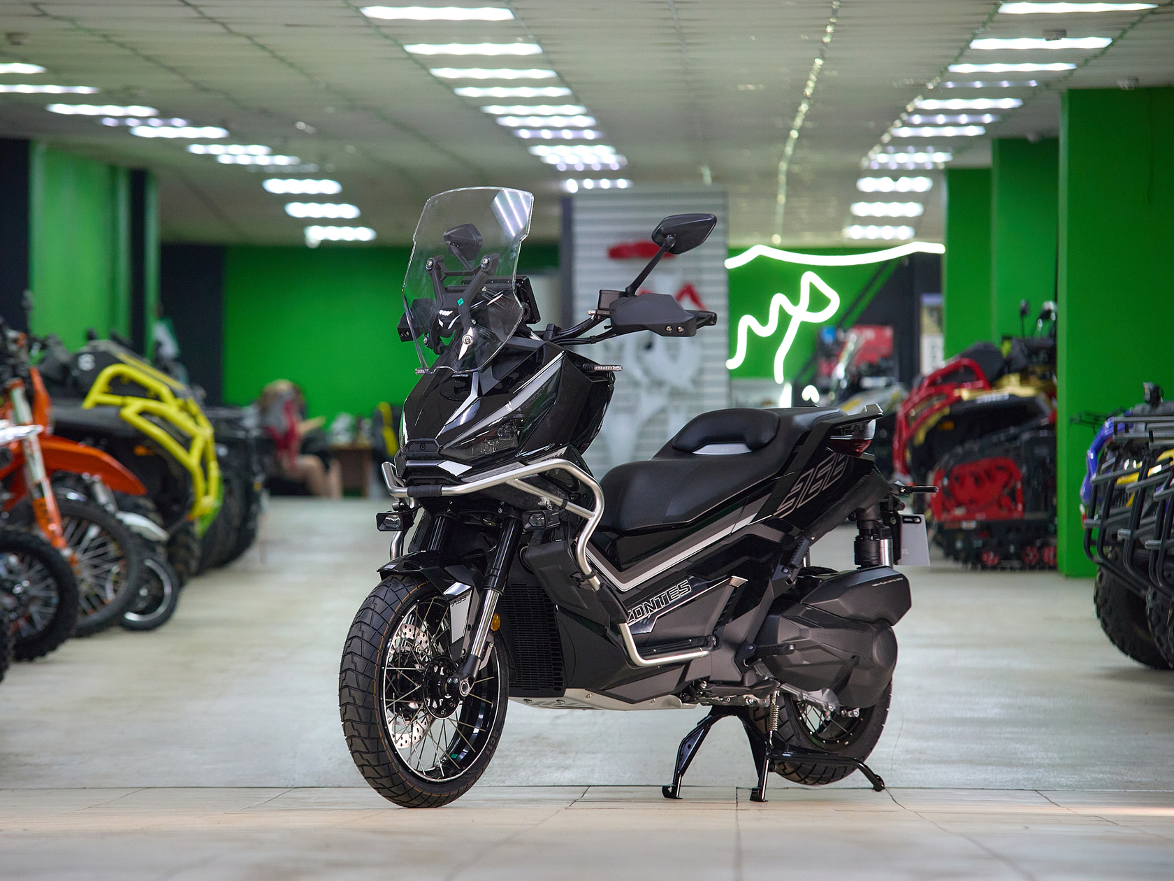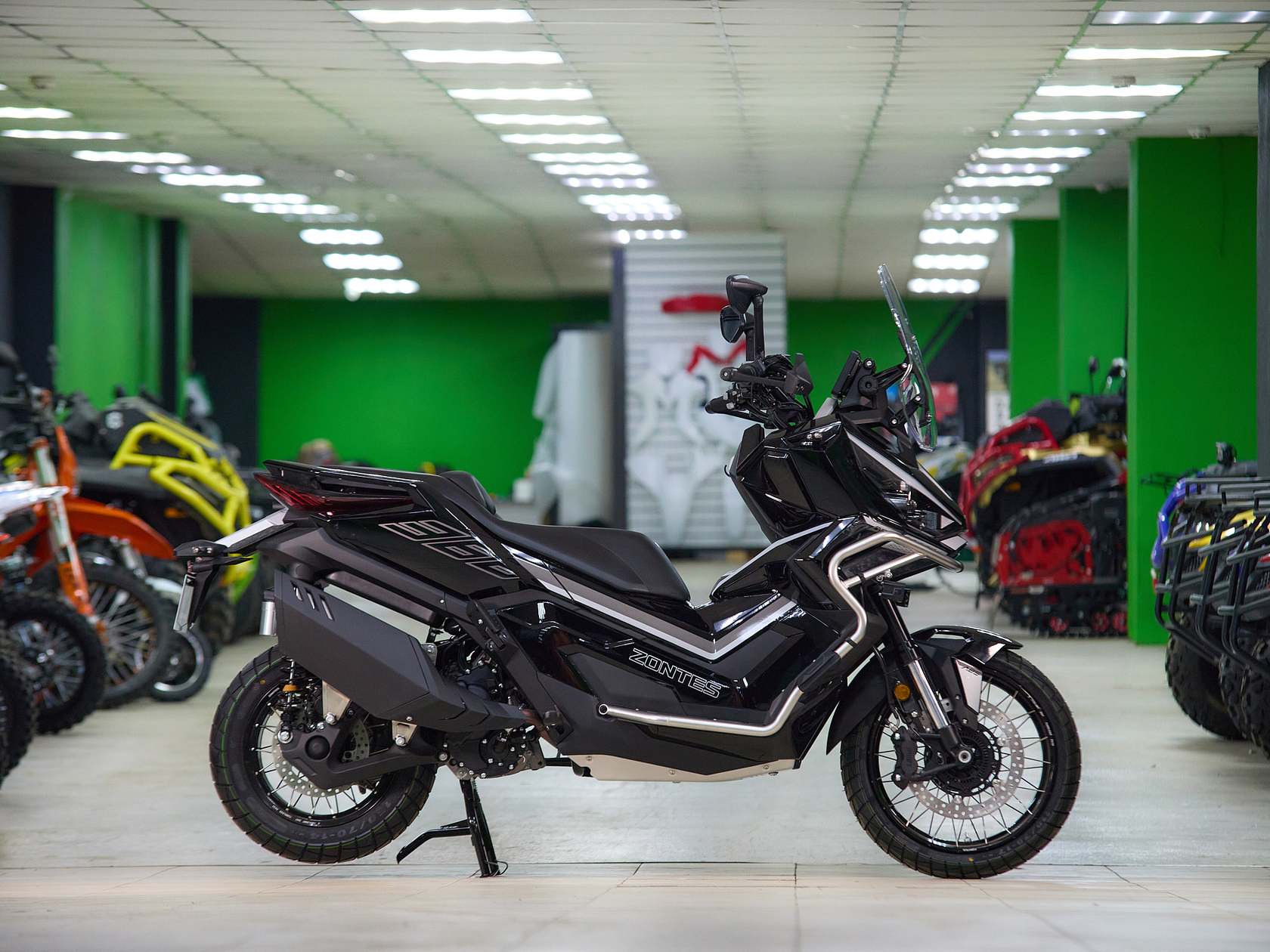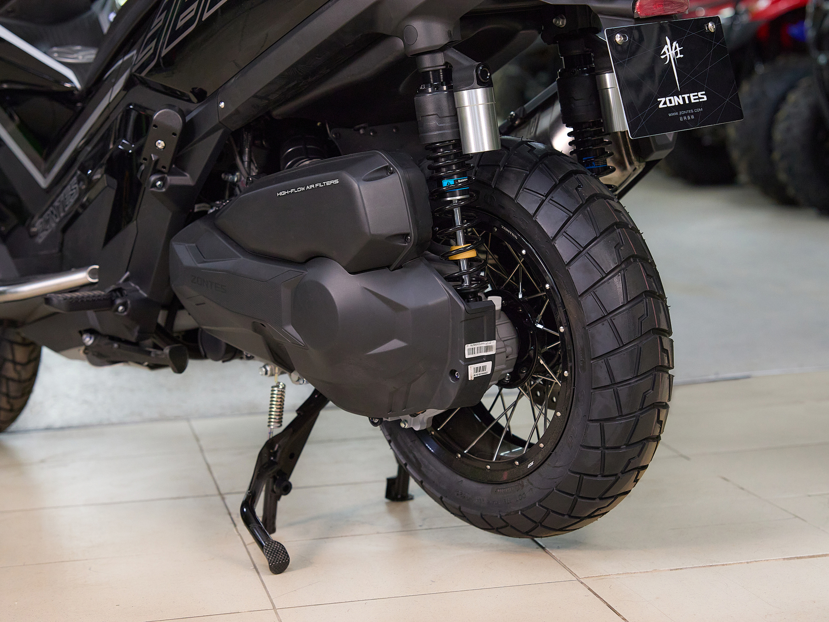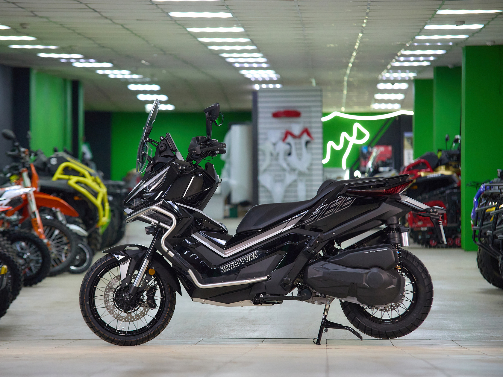 Скутер ZONTES ZT368-G – максискутер двойного назначения, готовый пронестись по улицам города за его пределы и отправиться по грунтовым тропам прокладывать свой маршрут туда, куда вам потребуется. Регулируемая подвеска с перевёрнутой телескопической вилкой спереди обеспечит отличную управляемость и устойчивость в любых условиях.Силовая установка представлена одноцилиндровым 4-тактным двигателем. Двигатель имеет объём 368 см³ и обеспечивает мощность в 38,8 л.с. Оснащён инжектором BOSCH, системой жидкостного охлаждения и вариатором. Запуск двигателя осуществляется с помощью бесключевого доступа.Ёмкость топливного бака 17,5 литра.Колёса имеют диаметр 17 дюймов спереди и 14 дюймов сзади. Для подвески спереди используется телескопическая вилка перевёрнутого типа, а сзади установлены 2 гидравлических амортизатора. Гидравлические дисковые тормоза произведены компанией J.JUAN, входящей в холдинг BREMBO. Мотоцикл также оснащён 2-канальной ABS-системой, противобуксовочной системой TCS System и датчиками давления в шинах.ZT350-G оборудован яркой LED-фарой, мультимедийной приборной панелью с TFT-дисплеем, имеются 2 USB-порта.Габариты скутера 2230х925х1290 мм. Колёсная база 1560 мм. Высота по седлу 795 мм. Вес 198 кг.Воспользуйтесь уникальной возможностью приобрести этот товар по специальной цене при оформлении предзаказа! Для вашего удобства цена уже указана с учетом специального предложения. Предоплата составляет 100%, срок ожидания поставки — от 90 дней. Остались вопросы? Наш менеджер с радостью проконсультирует вас по всем деталям!