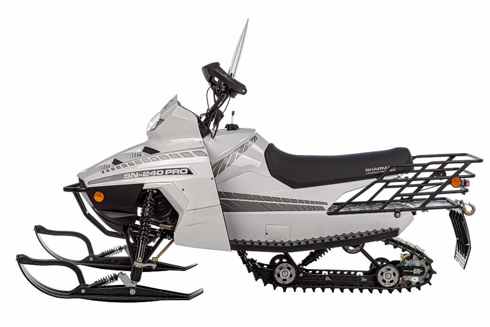 Инновации и передовые технологии, которые воплотил в данной модели снегоходов SN-240PRO Landcrafter известный на мировом рынке машиностроительный концерн Sharmax достойны высших похвал. Данный снегоход обладает рядом преимуществ, что выделяет его среди других моделей, представленных на рынке. Sharmax Landcrafter при загрузке в 170кг способен с легкостью развивать максимальную скорость в 50 км/ч по среднему снегу. Этому способствует мощный резино-тканиевый армированный гусеничный трак шириной 310 мм, обеспечивающий давление на снежный покров в глубину до 880мм и двигатель объемом 200 см³, который выдает 12 лошадиных сил.При небольшом весе снегохода всего в 170кг транспортировка техники к месту использования будет достаточно простой. А запаса хода снегохода Sharmax Landcrafter при полном баке без дозаправки и на максимальных оборотах хватит на 80-90 км пути.Sharmax Landcrafter в базовой комплектации оборудован информативной LSD панелью, способную предоставить подробную информацию даже при ярком солнечном свете, что весьма удобно на пересеченной местности. Также снегоход оборудован вместительным багажником и дополнительными креплениями по обеим сторонам и сзади для крепления груза и буксировки саней.Снегоход Sharmax очень маневренный и довольно простой в управлении. С ним справится даже новичок.