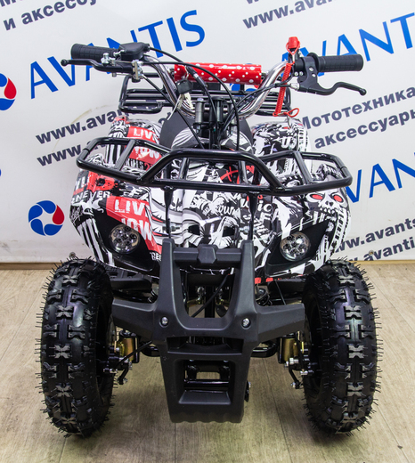 Е-квадроцикл обладает надежным и мощным электромотором. В отличие от своих бензиновых аналогов он имеет задний ход, что делает процесс езды более увлекательным.
