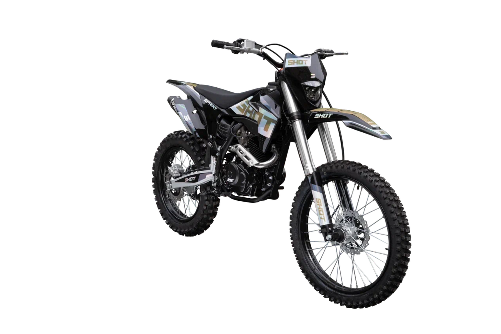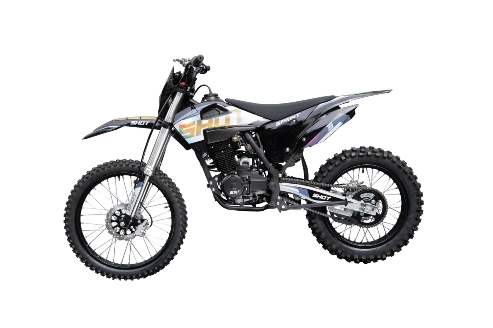 Эндуро мотоцикл SHOT SPRINT CB250 — лёгкий, надёжный и выносливый SHOT SPRINT CB250 — это универсальный эндуро мотоцикл, идеально подходящий как для начинающих, так и для опытных райдеров. Модель сочетает в себе манёвренность, достаточную мощность и качественную подвеску, что делает её отличным выбором для бездорожья, тренировок и активного отдыха. Основные характеристики: – Двигатель: Zongshen PR300 172FMM-5, объёмом 250 см³, оснащён баланс-валом для снижения вибраций и карбюратором Nibbi Racing PE30