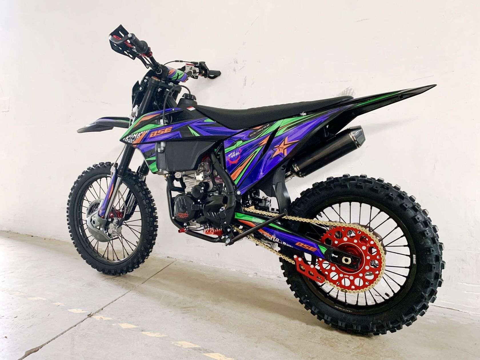 1BSE RUSSIA рада представить модель Т7 в новой комплектации SPORT.T7 Sport укомплектован профессиональной подвеской Mojo Racing (от компании ZL Sport). Передняя двухкамерная вилка с закрытым картриджем имеет полный диапазон регулировок, диаметр перьев - 48 мм, длина вилки – 930 мм, ход - 280 мм. Сзади установлен полностью настраиваемый моноамортизатор BSE Mojo Racing длиной 480 мм и ходом 120 мм. Подвеска с большими ходами помогает отрабатывать даже самые жесткие приземления, с лёгкостью "глотая" все неровности. Подвеску легко настроить под любой рельеф, любую трассу и стиль езды. Вы ощутите результат, когда будете сокращать секунды круг за кругом! Разработка подвески Mojo Racing производилась опытными инженерами-подвесочниками завода, а настройка — под чутким контролем заводской спортивной китайской командой BOSUER. Особое внимание было направлено на снижение веса всей подвески. Установлены новые усиленные CNC траверсы вилки.Также комплектация Sport включает в себя обновленную переднюю тормозную гидравлическую систему с диском диаметром 240 мм и новым фрезерованным передним суппортом Mojo Racing, для более мощного и прогнозируемого торможения. Также усиленное сцепление, фрезерованные траверсы вилки, фрезерованные подножки с увеличенным зацепом и более легкую фрезерованную заднюю звезду.Двигатель T7 – мощный, технологичный и тяговитый 4-х тактный Zonsen ZS174MN-5A (NB300). Рабочий объём 300сс, 4-клапанная ГБЦ, водяное охлаждение. Минимальные вибрации благодаря наличию балансирного вала. Система питания – проверенный карбюратор Nibbi Racing PWK34. Все это позволило снять внушительные 30 л.с. при 8500 об. в мин. и 22 Нм при 7500 об. в мин. Коробка передач – механическая 6 ступенчатая, запуск – только электростартером. Мотор очень эластичный, с отличными показателями крутящего момента на низах и верхах. А легендарная надежность завода моторов ZONSEN, удобство в обслуживании и доступность запчастей в представлении не нуждается!Ещё одна особенность модели Т7 – стальная рама, которая полностью соответствует всем стандартам самого известного австрийского бренда мотоциклов для кросса и эндуро – KTM. Единая геометрия, эргономика, пропорции и углы вылета вилки. Высококачественная сталь, малый вес и большой запас прочности, идеальная развесовка. Мотоцикл оснащен легким алюминиевым подрамником, системой прогрессии и пластиковой защитой мотора. Установлен новый тип пластика, прочный, легкий и современный.На T7 установлен топливный бак на 8 л, мощная тормозная гидравлическая система с дисками диаметром 240 мм, звезды 13t – 49t, «зубастые» покрышки CHAOYANG MX880 ST. Мотоцикл оснащается полностью светодиодной фарой головного света, грипсами и ручкой газа Nibbi Racing, металлической защита рук, CNC подножками с увеличенным зацепом, цепкой шкуркой сиденья и защитой тормозных дисков под карбон.Легкий, прекрасно сбалансированный, мощный мотор. Отточенная управляемость. Подходит для новичков, а также спортсменов в дисциплинах эндуро, хард-эндуро, супер-эндуро, мотокросс.