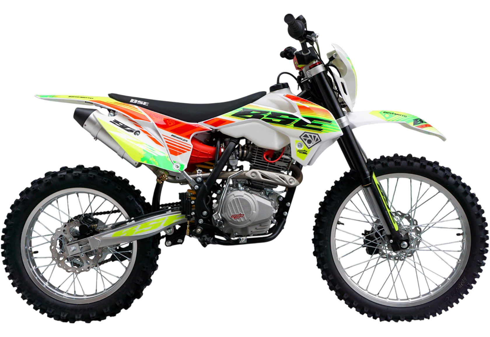 Кроссовый мотоцикл BSE Z2 оснащен надежным и экономичным 4-х тактным Zongshen ZS 166 FMM, контролируемая подача мощности благодаря карбюратору Nibbi, отличный отклик дроссельной заслонки на короткоходную ручку газа. Всепоглощающая подвеска, прогрессия задней подвески, прочная стальная рама BSE, вилка перевернутого типа, мощная гидравлическая тормозная система, буксаторы на всех колёсах, внедорожная резина – BSE Z2 не спасует в условиях бездорожья.Комфорт. Этого на BSE Z2 в избытке: LED фара, электростартер, удобное сиденье, широкий удобный алюминиевый руль, защита рук, прозрачный бак.Мотоцикл доступен в 3 цветовых исполнениях: Roqvi Yellow, Roqvi Green и Roqvi Pink.