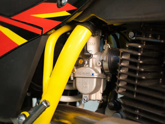 BSE RUSSIA представляет новинку 2024 - модель Z3 V!Бестселлер среднеразмерного сегмента BSE Z3 V обзавелся вариацией двигателя Zonsen ZS172FMM-5 с балансирным валом! Теперь минимум вибраций!Двигатель Z3 V: тяговитый 4-х тактный Zonsen ZS172FMM-5 (PR250) c балансирным валом. Рабочий объём: 250cc, 2-клапанная ГБЦ, воздушное охлаждение, мощность 21 лс. Легко контролируемая подача мощности благодаря карбюратору Nibbi Racing PE30 и отличный отклик дроссельной заслонки на короткоходную ручку газа. Коробка передач – механическая 5-ступенчатая, запуск – электростартером и кикстартером. Мотор очень эластичный, с отличными показателями крутящего момента на низких и средних диапазонах. А легендарная надежность завода моторов ZONSEN, удобство в обслуживании и доступность запчастей в представлении не нуждается!Среднеразмерный эндуро Z3 V готов на любые приключения! Мотоцикл оснащается стальная рамой повышенной жёсткости BOSUER с усилителями и алюминиевым мятником. Подвеска – регулируемая Mojo Standard с большими ходами помогает отрабатывать даже самые жесткие приземления, с лёгкостью "глотая" все неровности. Установлена прогрессия задней подвески. Мощная гидравлическая тормозная система HSK RACING остановит ваш мотоцикл максимально эффективно.Комфорт. Его на BSE Z3 V в избытке: полностью светодиодная фара головного света с 5 модулями и полоской дневного хода, задний стоп сигнал, USB зарядка, электростартер, удобное сиденье, широкий спортивный алюминиевый руль. Благодаря ЖК приборной панели и датчику моточасов вы всегда будете знать о всех главных параметрах мотоцикла. Металлическая зашита рук, задний багажник, буксаторы на усиленных ободах. Z3 V 21/18 в стандарте обут в «зубастые» покрышки Yanxing, спереди: 80/100- 21, сзади: 110/90 -18. Z3 V точно не спасует в условиях серьезного бездорожья.Компактный, легкий, с минимальным и вибрациями и фантастической управляемостью -отличный выбор для райдеров начального и среднего уровня. Чрезвычайно удачный, сбалансированный и комфортный мотоцикл. Современный яркий дизайн пластика. Z3 V доступен в нескольких цветовых решениях и в двух вариантах размерности колес: 21/18 или 19/16. Особое внимание на расцветку Red Twist – это первый BSE с желтой рамой!