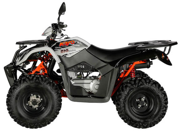 KAYO AU200 - популярная и доступная модель, которая пользуется вниманием широкого круга любителей внедорожных приключений и активного отдыха. Утилитарный мотовездеход обладает незаурядными возможностями практического использования и рассчитан на людей разного возраста и опыта.В крепкой раме, проверенной годами и тысячами пользователей, установлен 4-тактный мотор с вертикальным расположением цилиндра. Рабочий объем двигателя в 176 кубических сантиметров позволяет развивать максимальную мощность в 13 лошадиных сил. Данный мотор оснащается балансирным валом, что способствует снижению вибраций и положительно сказывается на комфорте передвижения.У KAYO AU200 используется автоматическая трансмиссия на базе вариатора. Рычаг селектора передач имеет три положения: задний ход – нейтраль – вперед. На крышке вариатора установлен шноркель, и его воздухозаборное отверстие расположено довольно высоко. Это дает возможность преодолевать небольшие водные препятствия, не опасаясь попадания воды в трансмиссию.Все кнопки управления оборудованием собраны в один компактный пульт. Здесь находятся кнопки запуска и остановки двигателя, переключатели светового оборудования, кнопка звукового сигнала. Для удобства запуска двигателя рычаг подсоса также вынесен на руль. Как и любой другой утилитарный квадроцикл, KAYO AU200 комплектуется задним и передним багажниками, сделанными из стальных труб и облицованных пластиком.