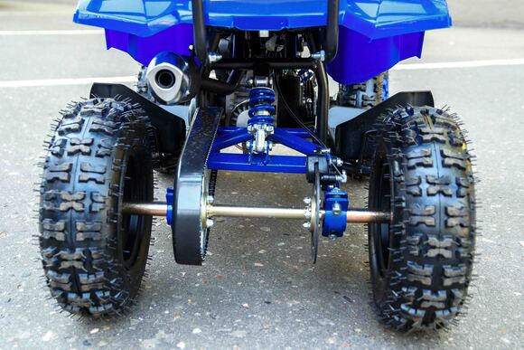 Подвеска передняя New Нерегулируемые амортизаторы отлично поглощают неровности дорожного покрытия. Родителям в таком случае можно не беспокоиться о переворотах, так как ребенок сможет полностью контролировать свой квадроцикл.