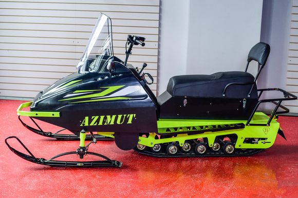 Миниснегоход Бурлак Азимут-2 - вторая версия флагманской новинки «Бурлак Азимут», имеет привлекательный внешний вид, уникальную комплектацию и при этом демократичную цену.По сравнению с первой версией, «Азимут-2» доступен в комплектации с двигателем мощностью 27 л.с., приборная панель дополнена спидометром, а для удобства управления установлены зеркала заднего вида.