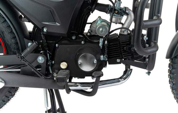 MotoLand Alpha RS 11 это продолжение легендарного и всеми любимого мопеда Alpha, внешний вид приобрел современную и эргономичную форму по пластику и обновленную приборную панель.Выпускается в трех цветах: красный, синий, черный.Мопед можно использовать для самых различных целей: для одиночного или совместного передвижения в городском потоке, сельской местности, поездки на природу, рыбалку и охоту.При этом он универсален и подходит мотолюбителям любого возраста и опыта вождения.Для подростков, подойдет как подарок и первый мотоцикл для только начинающего свое знакомство с миром мототехники.Для взрослых, которым нужна техника для поездок из точки А в точку Б и обратно, именно в таком режиме он способен показать себя с лучшей стороны.Мопед полностью отвечает требованиям к безопасному движению по городу и за городом: оснащен фарой дальнего и ближнего света, поворотниками, стоп-сигналом, звуковым сигналом, зеркалами заднего вида, габаритными светоотражателями.Для того чтобы ездить на мопеде, нет необходимости в регистрации в ГИБДД и страховке.Техническая сторонаМопед поставляется с 48 кубовым одноцилиндровым четырехтактным двигателем с воздушным охлаждением (1P39FMB). Установлен карбюратор PZ19.Двигатель работает ровно, имеет высокую мощность в широком диапазоне оборотов, что позволяет комфортно трогаться и быть уверенным, что двигатель не заглохнет в неподходящий момент.Двигатель имеет возможность легкого запуска с кнопки на руле, так как имеет электростартер, а при необходимости можно воспользоваться кикстартером.Механическая трансмиссия содержит 4 передачи.Мопед имеет хорошую динамику разгона, расход 3 л на 100 км, объем бака 7л, которого хватит на 200+ км.