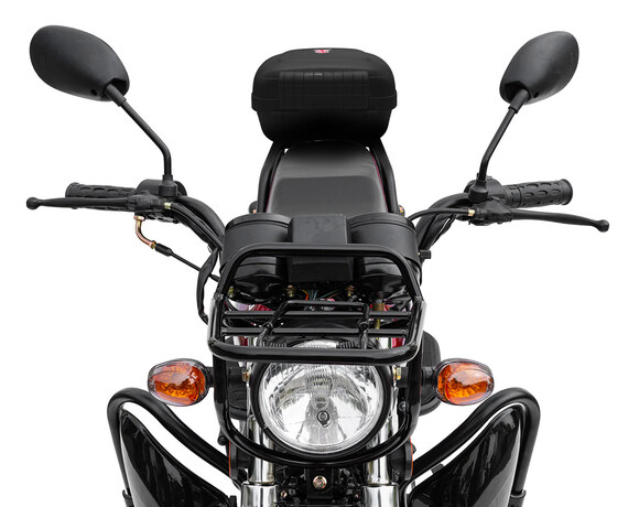 Представляем вниманию поклонников классической мототехники Regulmoto Alpha (RM-2) – обновленную версию популярного мопеда, которая отличается интересной комплектацией и расширенными возможностями повседневного использования. Данная модель отличается продуманной комплектацией, призванной повысить комфорт владельца мопеда и расширить эксплуатационный потенциал техники. Силовой агрегат – одноцилиндровый 4-тактник «кабовского» типа с увеличенным рабочим объемом. Новая ЦПГ устанавливается на производстве заводом-изготовителем и позволяет существенно поднять показатели производительности этого очень надежного и экономичного мотора. Прирост максимальной мощности двигателя также сказывается на скоростных характеристиках мопеда и удобстве управления транспортным средством.За комфорт передвижения по отечественным дорогам отвечают телескопическая вилка спереди и новые парные амортизаторы задней подвески, у которых можно настраивать жесткость пружины в зависимости от нагрузки на заднее колесо. Вопрос безопасности эксплуатации решают надежные барабанные тормоза в ступицах переднего и заднего колеса.Современный привлекательный дизайн мопеда Альфа дополняют такие актуальные решения как цельнолитые диски колес, светодиодные лампы фары головного света, а также организация дополнительного пространства для перевозки различных грузов. Последнему вопросу на Regulmoto Alpha (RM-2) уделено достаточно много внимания: сзади мопед оснащается багажным кофром и складывающимися багажными площадками, спереди над фарой закреплена багажная площадка, на защитных дугах установлены пластиковые бардачки.Воспользуйтесь уникальной возможностью приобрести этот товар по специальной цене при оформлении предзаказа! Для вашего удобства цена уже указана с учетом специального предложения. Предоплата составляет 100%, срок ожидания поставки — от 90 дней. Остались вопросы? Наш менеджер с радостью проконсультирует вас по всем деталям!