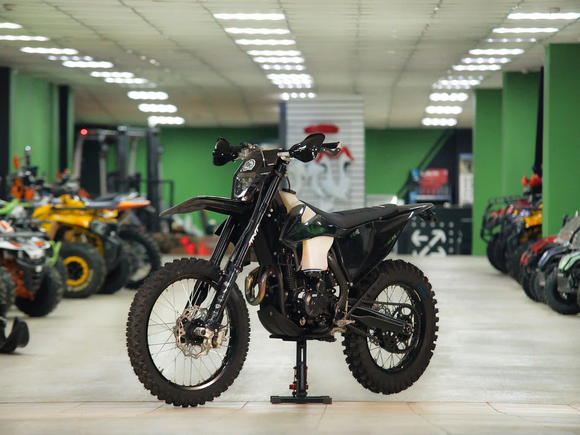 ДОПы New Руль 28мм. Короткоходная ручка газа. Цепь 520. Алюминиевая лапка КПП, боковые накладки на рамы. Счетчик моточасов, приборная панель. Стоп сигнал.