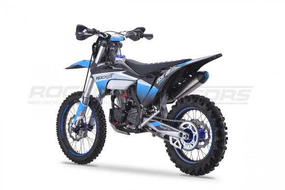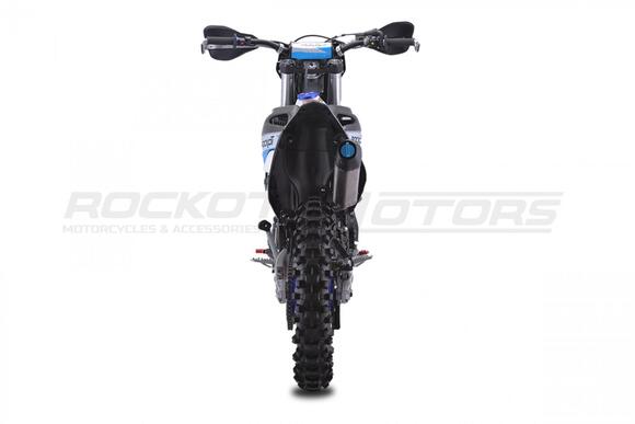 ROCKOT GS 8 RUSH - абсолютная новинка лета 2023 года от компании ROCKOT-MOTORS. Полноразмерный эндуро мотоцикл, с топовой подвеской и совершенно новым мотором, которого ждет не меньший успех, чем “народный” 172-ой.ROCKOT GS 8 RUSH - построен на новой раме S8, в облицовке австрийского GASGAS. Пластик отлит в черном цвете, на который нанесена яркая, контрастная графика в сочетании черного, синего и серого цветов. Расцветка графики эффектно подчеркивает каждую деталь мотоцикла. Рама, траверсы, руль, рычаги тормоза и сцепления, окрашены в черный цвет. В синем цвете выполнены колесные ступицы, CNC крышка бака и защитные наклейки на ободьях колес. Все остальные детали мотоцикла окрашены в серый, металлический цвет.Производительная тормозная система, превосходно останавливает байк на бездорожье даже при резком, экстренном торможении. Превосходный и ощутимый отклик тормозной системы на каждое усилие при нажатии, не позволит Вам допустить ошибку при торможении. Гидролиния переднего и заднего тормоза - армированная. Спереди установлен двухпоршневый тормозной суппорт, сзади - однопоршневый.Задняя тормозная система максимально защищена: задний тормозной цилиндр закрыт пластиковой защитой рамы. Также защищены и задние тормозные суппорт и диск.ROCKOT GS 8 RUSH – полноразмерный эндуро мотоцикл с мощным двигателем воздушно-масляного охлаждения. Данная модель вполне заслуженно является одной из лучших, среди эндуро мотоциклов предназначенных для гонок класса «Lite» и способна привезти новичка на «тумбу победителей»