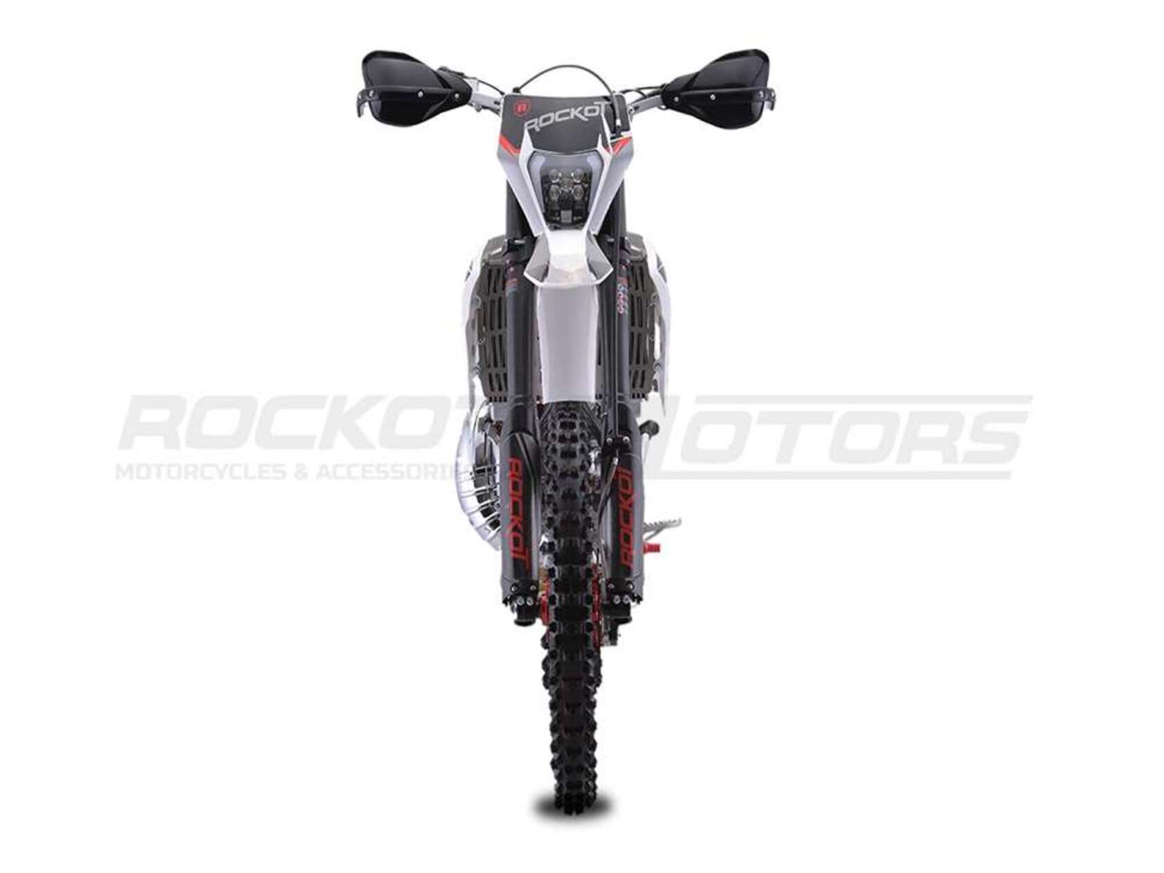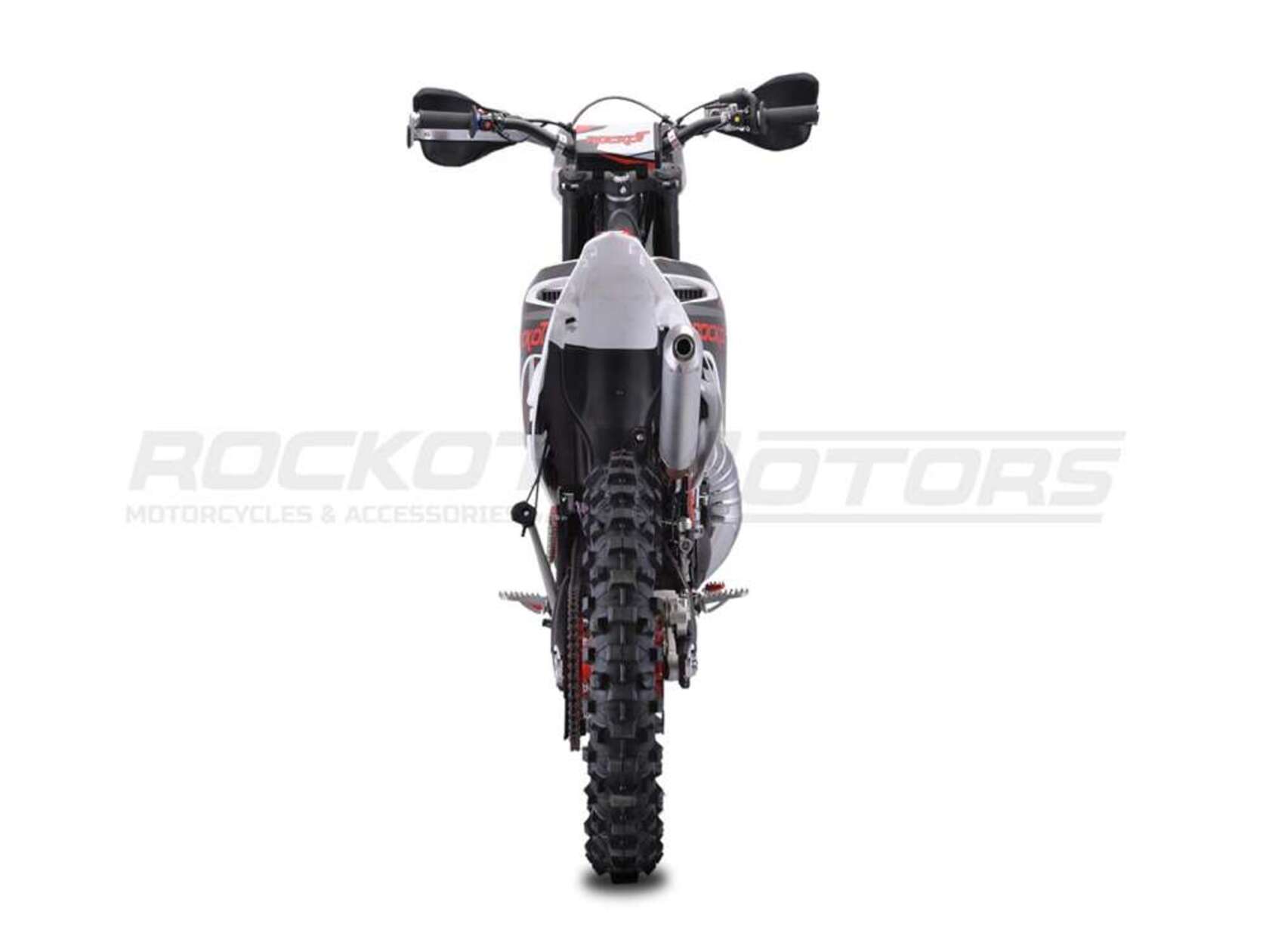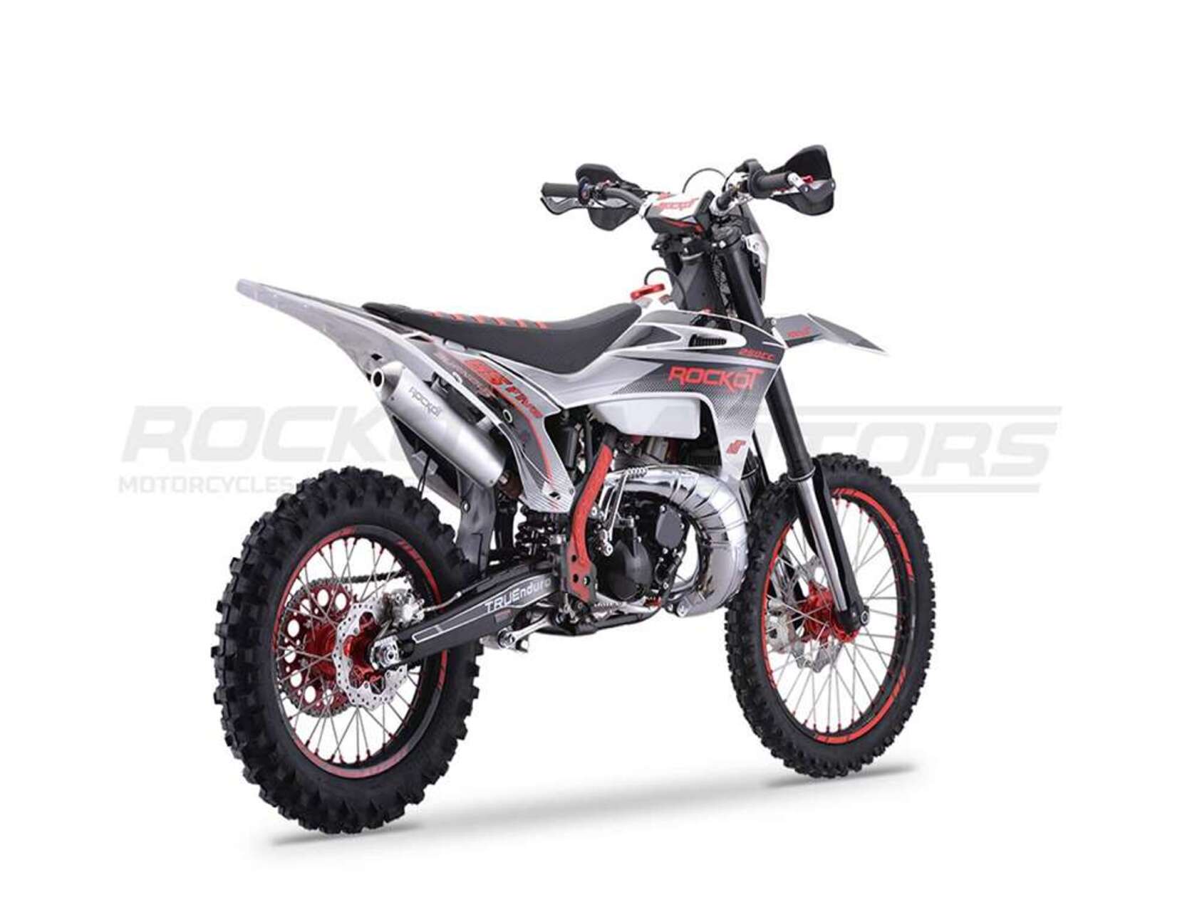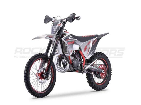 ROCKOT GS FIVE - новая ветвь развития в линейке эндуро мотоциклов ROCKOT. Мощный двухтактный двигатель, легкая и прочная рама, картриджная регулируемая подвеска - лишь часть достоинств данного мотоцикла. ROCKOT GS FIVE был создан на основе нашего многолетнего опыта в проектировании мотоциклов и быстрорастущем стремлении начинающих мотоспортсменов побеждать.Как уже принято, в лучших традициях линейки GS Series - мотоцикл выполнен в пластике “GASGAS”.ROCKOT GS FIVE получил обновленную фару типа KTM с пятью светодиодными линзами и габаритными огнями новой формы.GS FIVE привлекает внимание сочетанием максимального контраста цветов черного, красного и серого титана.Облицовка из белого пластика, выглядит единым целым вместе с топливным баком того-же белого цвета.Двигатель, рама, подвеска и колесные диски, окрашены в глубокий черный цвет, на фоне которого так эффектно выделяются тюнинговые элементы и графика яркого красного цвета.Делает дизайн завершенным и указывает на принадлежность мотоцикла к серьезным эндуро испытаниям - большое количество тюнинговых и защитных деталей.Полностью гидравлическая тормозная система с армированной гидролинией. Спереди установлен двухпоршневый суппорт, сзади - однопоршневый. ROCKOT GS FIVE имеет тормозные диски увеличенного диаметра: 270 и 240 мм.