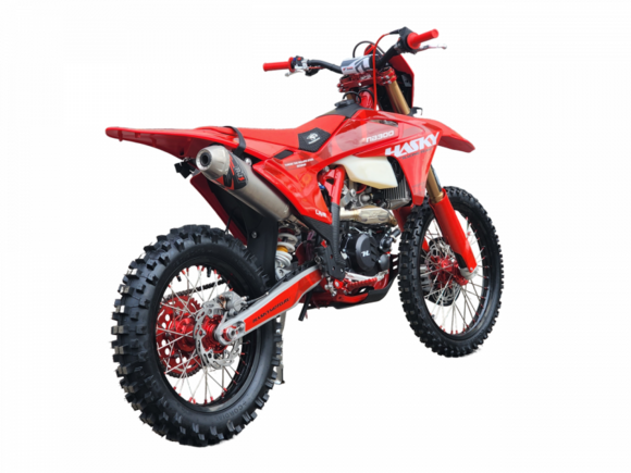 Hasky A10 Pro NB300 2025 — это флагманский эндуро-мотоцикл нового поколения, созданный с упором на максимальную надёжность, проходимость и гоночные характеристики. Эта полноразмерная модель на базе колёс 21/18 разработана для райдеров, которым нужна топовая техника без компромиссов.В сердце байка — мощный двигатель ZS174MN-5A NB300 объёмом 300 см³ с балансирным валом, обеспечивающий мягкую работу и эффективную тягу на всём диапазоне оборотов. Он работает в паре с шестиступенчатой коробкой передач и запускается электростартером. За идеальную топливную смесь отвечает карбюратор NIBBI PWK34 RACING, который уверенно раскрывает весь потенциал двигателя даже в экстремальных условиях.Основой конструкции служит новая рама A10, спроектированная с учётом высоких нагрузок и агрессивной езды. Подвеска — один из главных козырей модели: вилка HTW T10 с 48 мм перьями закрытого картриджа с полными регулировками, а также задний амортизатор AJ1 на японских комплектующих позволяют точно настраивать мотоцикл под любой стиль катания. Конструкция без прогрессии обеспечивает прямую обратную связь от трассы.Пластик выполнен в стиле GASGAS 2024 года, что подчёркивает спортивный характер байка. Выхлопная система с титановой трубой глушителя снижает вес и улучшает терморежим. Руль из алюминиевого сплава 7075 усиленного типа, новые широкие пеги AJ1, грипсы AJ1 Lock On и антискользящее сиденье AJ1 обеспечивают комфорт и полный контроль в любой ситуации.На мотоцикле установлены усиленные алюминиевые обода 7050 серии с фрезерованными ступицами, толстые камеры со стенкой 3 мм и фиксатор покрышки AJ1. Покрышки Cordial на обоих колёсах обеспечивают уверенное сцепление с любым покрытием.Тормозная система AJ1, выполненная по образцу Brembo, даёт максимальное замедление и стабильную работу даже при перегреве. Установлены TORKs-крепежи, а также фирменные элементы от NIBBI: ручка газа, тросы газа и сцепления. Защищённость байка продумана до мелочей: влагозащищённая проводка, воздушный фильтр увеличенной площади из негорючего материала, защита двигателя, перьев, радиатора, тормозного диска и рамы, буксировочные стропы спереди и сзади, а также мощная светодиодная фара с 4 линзами.Hasky A10 Pro NB300 2025 — это топовый эндуро-байк для тех, кто требует максимум от своей техники: максимальной отдачи, управляемости, контроля и выносливости.