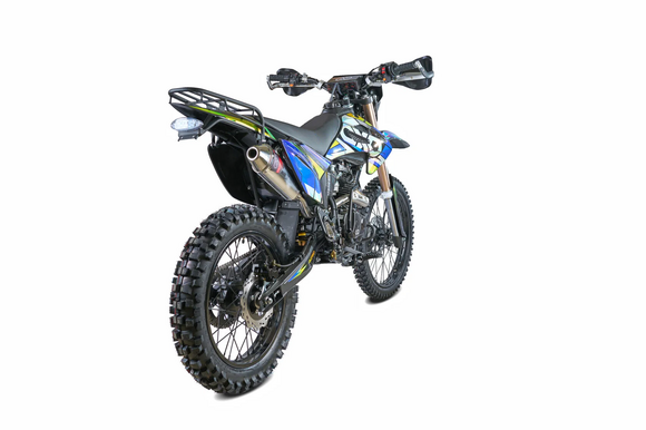 ДвигательДвигатель ZS165FMM - 4-тактный двигатель воздушного охлаждения объёмом 223 куб см с двумя клапанами, оснащён балансировочным валом, благодаря которому уменьшается избыточная вибрация, передаваемая от двигателя на раму и общую конструкцию техники. Характеризуется хорошей тягой с самых низов и лёгким пуском с помощью электростартера. Двигатель отлично зарекомендовал себя в качестве надёжного, универсального, неприхотливого мотора с хорошими характеристиками.РамаРама мотоцикла OXO производится из труб шестигранного сечения хром-молибденовой стали, которая является очень прочной и легкой. Геометрия рамы, благодаря правильно выверенному центру тяжести и углу наклона вилки - способствует наилучшей управляемости устойчивости мотоцикла на низкой скорости.ПодвескаПередняя вилка перевернутого типа. Мотоцикл LITE 250 снабжен моноамортизатором, который соединен посредством системы рычагов прогрессии. Система прогрессии, обеспечивает равномерную, мягкую работу и увеличивает длину рабочего хода подвески.КолесаРазмер передней покрышки: 80/100-21. Размер задней покрышки: 120/100-18. Они прекрасно себя ведут по песку и грязи, что позволяет райдеру отлично показать себя на пересеченной местностиТормозная системаТормозная система мотоцикла - полностью гидравлическая с армированными шлангами. Спереди и сзади установлен двухпоршневой суппорт. Данная конфигурация тормозных механизмов, позволит быстро и безопасно остановиться с максимальной скорости даже на бездорожье.РульВажная часть современного эндуро мотоцикла - усиленный руль переменного сечения Мотоцикл укомплектован панелью приборов.