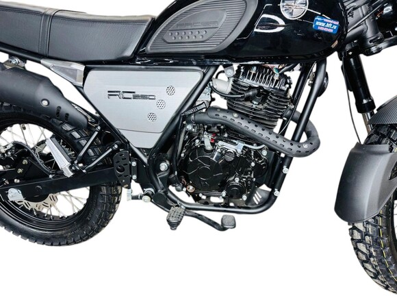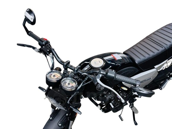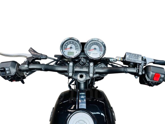 Racer RC300-GY8H Triumph 300 — это компактный и легкий мотоцикл с продуманными техническими характеристиками, ориентированный на городскую и пригородную эксплуатацию. Его габариты составляют 1980х835х1350 мм, что делает его маневренным на дороге, а колесная база 1330 мм обеспечивает устойчивость при движении. Вес мотоцикла — 110 кг, что позволяет легко управлять им, даже неопытным водителям.Сердцем модели является 4-тактный двигатель объемом 297 см³ с балансировочным валом, который выдает мощность 25 л.с. при 8500 об/мин. Двигатель охлаждается воздушной системой, что делает его простым в обслуживании и надежным в эксплуатации. За подачу топлива отвечает карбюратор PZ32. Мотоцикл оснащен пятиступенчатой коробкой передач с классической схемой переключения (1-N-2-3-4-5), а запуск возможен как с электростартера, так и с кик-стартера.Топливный бак объемом 14 литров обеспечивает запас хода на длительные поездки, при этом расход топлива составляет всего 2,8 л на 100 км, что делает его экономичным вариантом. Модель способна развивать скорость более 100 км/ч, а максимальная нагрузка — 130 кг — позволяет комфортно перевозить водителя и пассажира.За комфортное передвижение отвечают спицованные колеса с алюминиевыми ободами и шинами Cordial, которые обеспечивают отличное сцепление с дорогой. Размер переднего колеса — 110/90-17, заднего — 130/80-17. Тормозная система представлена двухпоршневыми дисковыми тормозами как на переднем, так и на заднем колесе, что гарантирует уверенное и безопасное торможение.Подвеска мотоцикла представлена телескопической вилкой спереди и регулируемым моноамортизатором сзади, что обеспечивает плавный ход и комфорт на различных типах дорожных покрытий. Приборная панель оснащена современной электронной системой, позволяющей легко считывать все необходимые данные.