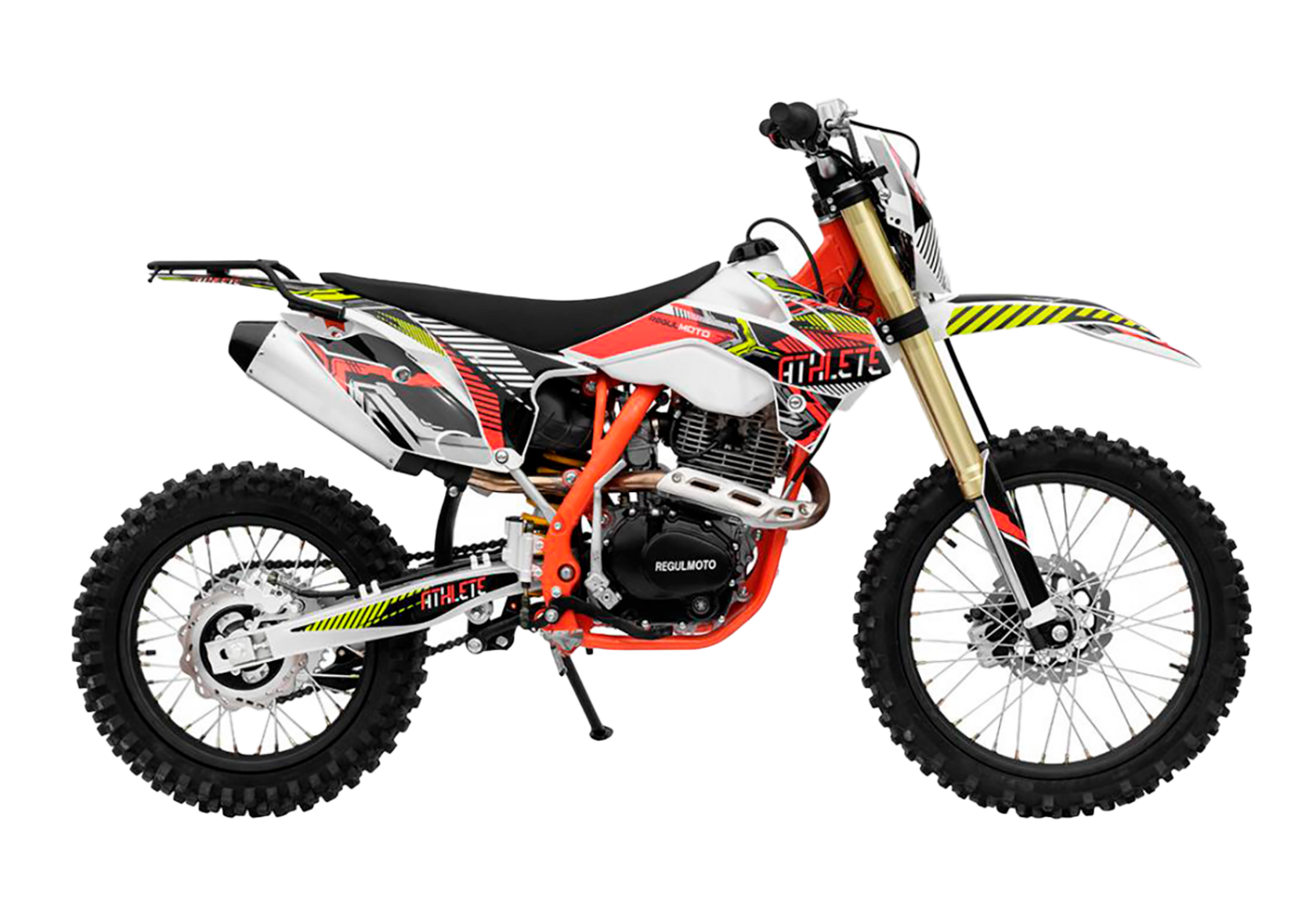 Regulmoto ATHLETE 250- мотоцикл любительского уровня, подходящий для покатушек по лесу и полям.Основными особенностями которого являются: прочная рама из хромомолибдена,хорошая тормозная система, прочный толстостенный руль, бензобак 6,5 литров, надежный мотор имеющий мощность около 21 лошадиной силы. У нас Вы можете купить этот мотоцикл с бесплатной доставкой по РФ и гарантией до года. Также его можно приобрести в рассрочку или в кредит.Данная модель поставляется с ПТС!