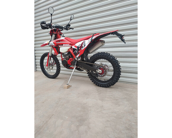 Regulmoto Holeshot Red Edition – новинка модельного ряда мототехники Regulmoto, байк двойного назначения с достаточно мощным 4-тактным двигателем воздушного охлаждения 4 клапана, который способен проявить себя как на дорогах с покрытием (у мотоцикла есть ПТС), так и на бездорожье.Отличительной особенностью модели стала комплектация мотоцикла двигателем Zongshen ZS172MN-5 4 клапана на цилиндр с ЦПГ увеличенного объема с коробкой на шесть передач – в бигборе установлен поршень диаметром 75 миллиметров. Такое решение позволило добиться большей отдачи мощности и крутящего момента в диапазоне низких оборотов, что немаловажно для внедорожной мототехники. А наличие балансирного вала сводит к минимуму уровень вибраций, делая эксплуатацию мотоцикла на дорогах общего пользования максимально комфортной.В основу конструкции мотоцикла легла рама из хромолевой стали KTM модельного ряда 2022 года. Подвеска байка готова отрабатывать широкий спектр задач: спереди в траверсах перевернутой вилки стоят регулируемые телескопические амортизаторы (аналог SHOWA) длиной 940 мм и диаметром штока 47 мм. Задняя часть подвески собрана на базе алюминиевого маятника с системой рычагов прогрессии и регулируемого моноамортизатора длиной 480 мм.Колеса диаметром 21/18 дюймов собраны на прочных и легких ободьях из алюминиевого сплава марки 7116 и фрезерованных алюминиевых ступицах. В стоке стоит внедорожная резина с увеличенными грунтозацепами «Regulmoto» аналог Mitas 754 размерности 80/100-21 и 120/90-18. Для комфортного передвижения по асфальтированным дорогам понадобится комплект мотардовых покрышек или колеса с такой резиной в сборе.