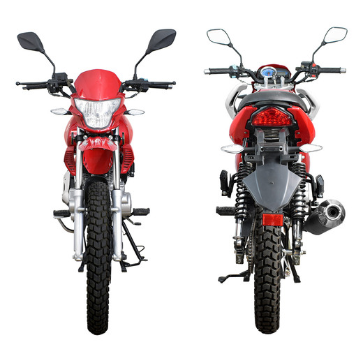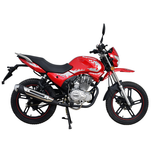 Компания «Regulmoto» представляет вниманию поклонников двухколесной мототехники мотоцикл Regulmoto SK200-9 – надежный и доступный для многих байк с широкими эксплуатационными возможностями. Мотоцикл Regulmoto SK200-9 – один из ярких представителей линейки малокубатурной мототехники известного азиатского производителя Senke. Мотоциклы производства одного из крупнейших китайских концернов пользуются заслуженным признанием экспертов и мотолюбителей в различных частях света, включая Европу и Америку. Продукцию Senke отличают не только одно из лучших на рынке соотношений достойного качества и демократичной цены, но и солидный эксплуатационный ресурс, высокая надежность, простое и недорогое сервисное обслуживание. В раме мотоцикла с 18-дюймовыми колесами на литых дисках установлен 4-тактный 200-«кубовый» двигатель с воздушным охлаждением, который способен развивать максимальную мощность в 13,6 лошадиных сил. Наличие у двигателя балансирного вала способствует снижению вибрации при работе мотора. 5-ступенчатая трансмиссия, электростартер, полноценная подвеска, представленная телескопической вилкой спереди и двумя амортизаторами и маятником сзади, цифровая приборная панель и емкий топливный бак – все это позволит получать максимум удовольствия от поездки. За безопасность использования мотоцикла Regulmoto SK200-9 отвечают надежная тормозная система (дисковый тормоз спереди и барабанный сзади), комплект светового оборудования и зеркал заднего вида. Regulmoto SK200-9 отличают современный внешний вид и обширные возможности практического использования: комплектация байка dual-sport резиной и увеличенный дорожный просвет позволяет эксплуатировать его как на асфальтированных дорогах, так и на проселках и тропах, включая легкое бездорожье.