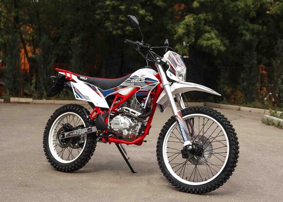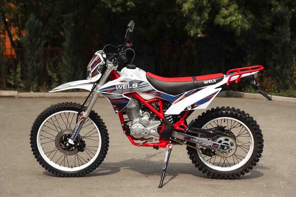 Представляем Вам новую модель мотоцикла от компании WELS - Мотоцикл WELS MX-250 R 2019-го года выпуска. У нас Вы можете купить этот мотоцикл с бесплатной доставкой по РФ и гарантией до года. Также его можно приобрести в рассрочку или в кредит. Мотоцикл WELS MX-250 R является надежным и комфортным в эксплуатации. В раме на колесах 21/18 с стальными ободьями и буксаторами установлен проверенный 4-тактный двигатель с воздушным охлаждением Zongshen 165FMM. Подготовкой топливной смеси для двигателя занимается карбюратор KEIHIN; технический потенциал силовой установки мотоцикла позволяет продемонстрировать 17 «лошадей» максимальной мощности. Подвеска аппарата представлена традиционными вилкой-перевертышем спереди, а также маятником, линком прогрессии и моноамортизатором .Высокая надежность, удобство управления в сложных условиях бездорожья, а также простота сервисного обслуживания обеспечена подбором качественных комплектующих и компонентов мотоцикла.