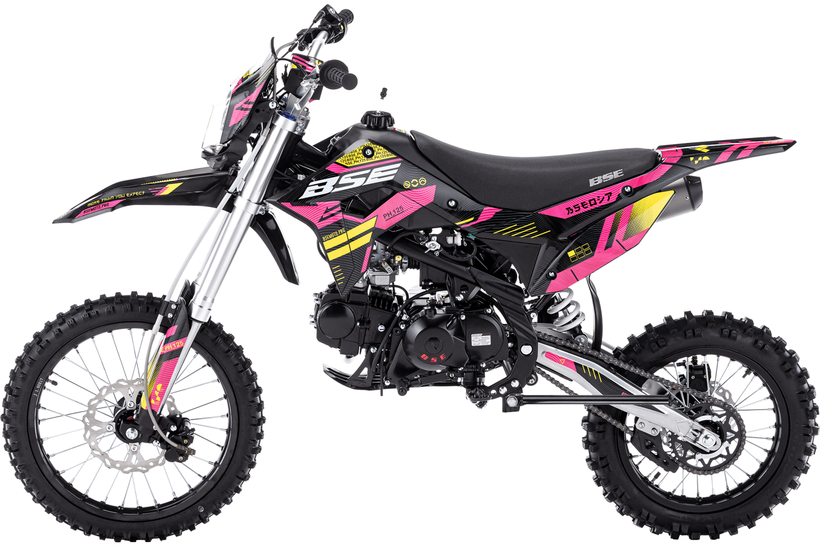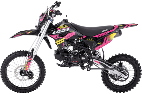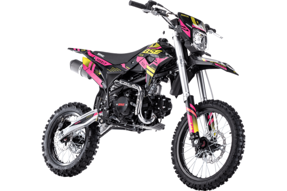Питбайк BSE PH125 на колесах 17/14 дюймов – один из самых популярных, надежных и продаваемых питбайков 125 куб см среди китайских производителей! Этот классический питбайк объёмом 125 см3 обладает рядом модификаций и полезных усовершенствований, которые дополняют его функционал и отличают от конкурентов. PH125 оснащен колесами классическим для питбайка размером колес 17/14. Основа PH125 - рама из хромомолибденовой стали повышенной жесткости с литыми усилителями - фирменный знак качества завода BOSUER! Cиловая установка питбайка – надежный, тяговитый и мощный 4-тактный двигатель Zonghshen 125 куб см с воздушным охлаждением и мощностью 10 лс. Питает мотор карбюратор Jingke PZ 26. Питбайк оснащен 4-ступенчатой механической трансмиссией. Запуск мотора осуществляется при помощи электростартера или кик-стартера. Подвески с большими ходами: передняя - телескопическая вилка перевёрнуто типа, задняя- моноамортизатор. "Злая" резина, Мощная тормозная система HSK Racing, японские колесные подшипники NTN, усиленная цепь 428 Gold, защита мотора - питбайк полностью укомплектован всем необходимым для покатушек и гонок.