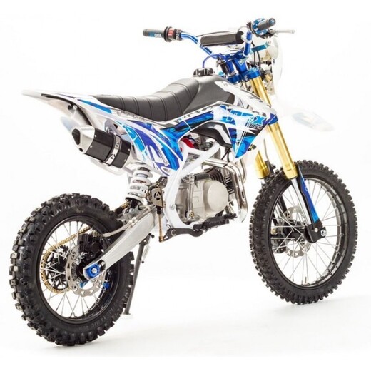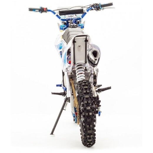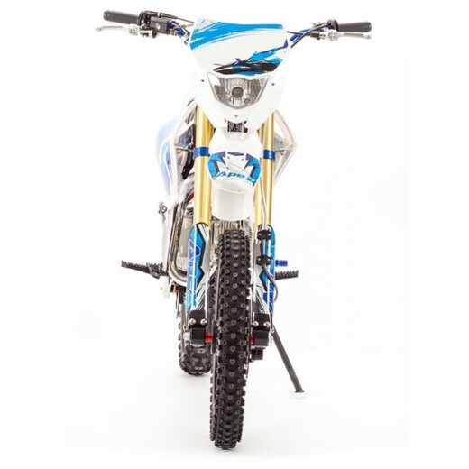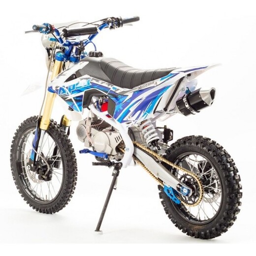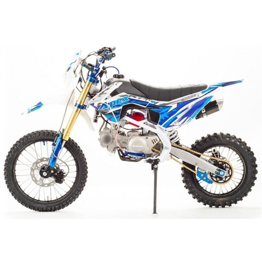 Недорогой надёжный питбайк APEX14 идеален для поездок по грунтовым дорогам и бездорожью. Хорошо чувствует себя на мягком и среднем грунте, разгоняется до 100 км/ч. Оснащён CNC траверсами, фарой, весит всего 70 кг. Питбайк прост в управлении и не требует специального ухода, подойдёт как новичкам, так и любителям мотокросса. У кроссового мотоцикла APEX14 отличный узнаваемый дизайн. Конструкция подчёркивает неуступчивый спортивный характер питбайка, который не остановится ни перед одним препятствием. Пластик комбинированный, прочный, не ломается при сгибании. Кроссовый мотоцикл APEX14 доступен в красном и синем цвете, при этом в основной цвет окрашен не только пластик, но и обода колёс и другие детали питбайка. Передняя подвеска — телескопическая нерегулируемая вилка перевёрнутого типа, которая отлично подходит для преодоления ям, ухабов и других неровностей плохих дорог или их отсутствия. Задняя подвеска маятниковая с моноамортизатором. Руль 22 мм с высоким подъёмом и перекладиной удобен для мотоциклистов разного роста. Ручки руля — комфортные PRO TAPER. Питбайк оснащён складными рычагами сцепления и переднего тормоза, а также CNC-лапкой переключения передач. Питбайк весит всего 70 кг, при этом выдерживает вес до 150 кг. Оснащён CNC траверсами, рама полудуплексная стальная, мотоцепь качественная. Колёса спицованные, сделаны из прочного и лёгкого алюминия. Размер заднего колеса — 14 дюймов (350 мм), переднего — 17 дюйм (430 мм). Тормоза дисковые, передний тормозной суппорт двухпоршневой, задний — однопоршневой. Питбайк оснащён карбюратором с фильтром нулевого сопротивления VM26 MIKUNI и одноцилиндровым четырёхтактным двигателем с воздушным охлаждением. Надёжный мотор мощностью 11 л. с. и объемом 140см³ разгоняет кроссовый мотоцикл APEX14 до 100 км/ч. Коробка передач механическая, четырёхступенчатая. Система зажигания электронная (CDI), для запуска двигателя можно использовать кикстартер. Покрышки с шипами и высоким грунтозацепом идеальны для бездорожья. Мощность мотора и небольшой вес питбайка позволяют ему преодолевать значительные препятствия и непролазную грязь, хорошо заходить в подъёмы. Также в комплекте есть щиток для номера, который ставится вместо фары. Питбайк 140 относится к недорогим моделям, которые при должной эксплуатации работают без сбоев и капризов. Кросс неприхотлив в обслуживании, не занимает много места в гараже. При необходимости в нём легко сменить любую повреждённую деталь.У нас Вы можете купить этот питбайк с бесплатной доставкой по РФ и гарантией до года. Также его можно приобрести в рассрочку или в кредит.