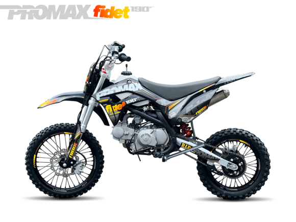 Питбайки PROMAX FIDET это премиальная серия техники для занятия мотоспортом.Техника создана по высочайшему уровню с использованием самых качественных компонентов.Рама серии PROMAX FIDET (ФАЙДЕТ) имеет уникальный скелет, созданный по технологии пространственной рамы и имеет идеальную разрисовку, что оценит любой профессиональный райдер. Правленая разрисовка, это основа для комфортной езды и грамотного управления кроссовым мотоциклов. Рама созданная на базе разработок KTM Factory Edition и имеет уникальный сплав, для облегчения без потери жесткости конструкции.Сердце, это двигатель премиального производителя YX150E (YINXIANG) с не менее знаменитым источником подачи топливной смести в лице Японского карбюраторf NIBBI, данная связка двигателя с карбюратором зарекомендовали себя на соревнованиях Motocross of European Nations. Питбайки JMC, DAYTON и другие, в основе которых были двигателя YINXIANG заняли весь пьедестал в Motocross of European Nations.Премиальная подвеска подвеска ITALIN V-ONE 810 мм, Задняя подвеска: ITALIN V-ONE 350 мм от компании MNT, это одно из лучший решений для питбайков!Выхлопная система от культового производителя Akrapovic с внешней камерой в Powerbomb позволяет воздуху расширяться, охлаждаться и ускоряться с большей скоростью, что придает больше мощности в базовых двигатель и создает более благородный, басистый звук!Алюминиевые колеса KKN, это элемент который вы можете встретить только в Японских или дорогих Тайваньский мотоциклах. Кроме того, колеса оснащены АНТИ-БУКСАТОРАМИ компании ALFA-PRO, которые не позволяют вашей покрышке провернутся при большой нагрузке. Важный элемент для профессионалов!Пластиковые элементы от премиального производителя RXF PLAST PRO, этот пластик выдержит значительно больше нагрузки чем у конкурентов!Базовые модели FIDET (FIDELIS) оснащены датчиком моточасов ,позволяющим отслеживать периодичность для проведения технического обслуживания.